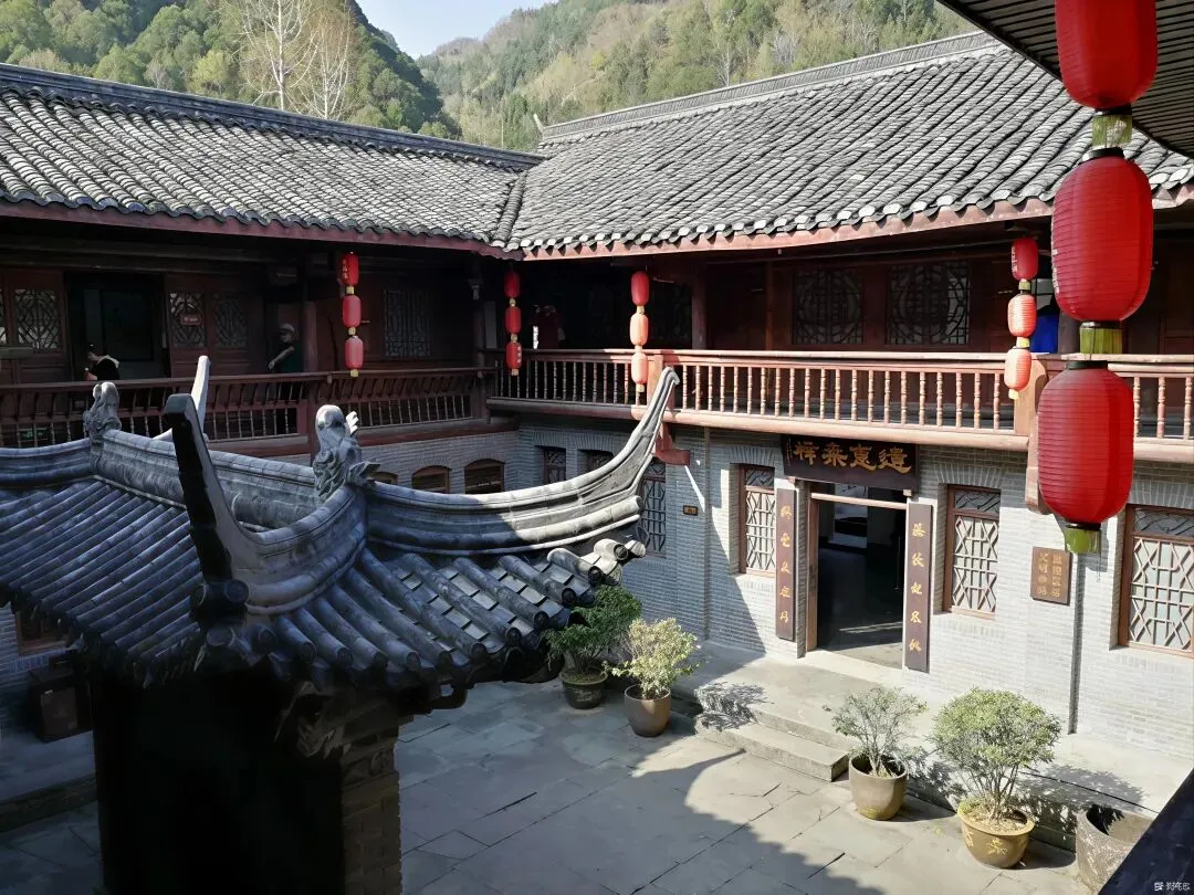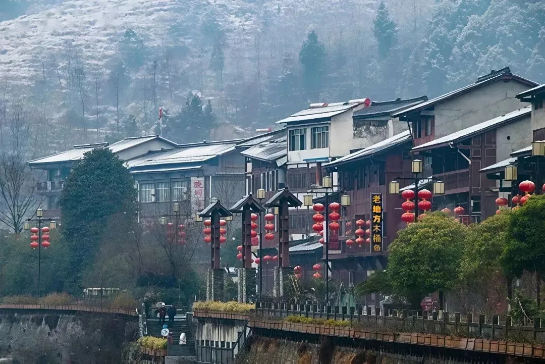 南方的古镇很少见雪,但青木川位置偏北,雪落下来,飞檐和老槐树都变白,跟画似的。