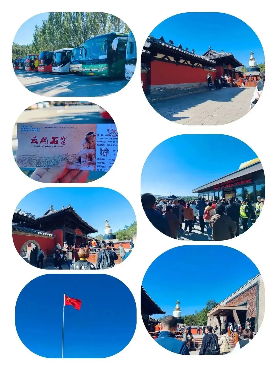 上午10点多,我们一行50多人,乘坐大巴车,到达云冈石窟景区停车场。小张安排大家在车内稍作休憩等待,她去售票口给大家购买门票,同时还为我们聘请了一位导游。考虑到下午有部分人员需随大巴车返回北京,小张做出了统一部署,要求大家在下午 1 点钟准时返回停车场集合。
