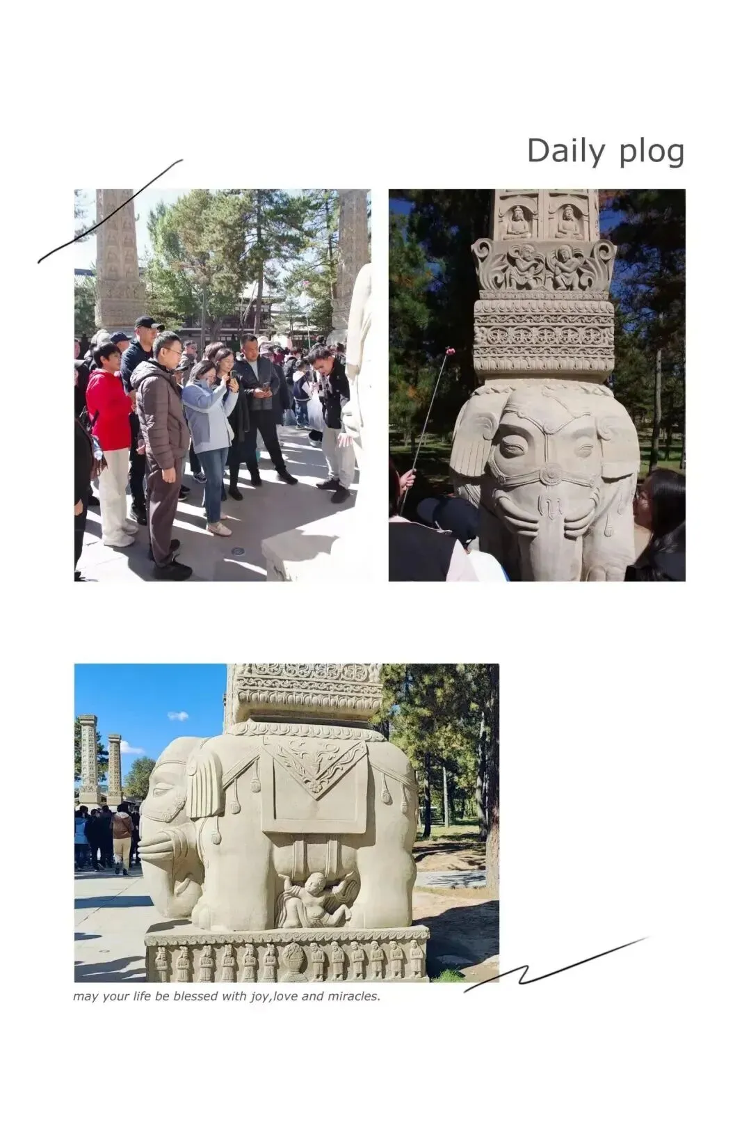 导游又给我们讲解了千佛柱之下的白象雕刻。他说:“当年,释迦牟尼的母亲在梦中见一头白象向她走过来,便有了身孕,后来诞下了释迦牟尼。普通的大象只有两颗牙齿,而这头大象有 6 颗牙齿,这 6 颗牙齿代表着佛家的六种修行方式,也就是六度,欲修六度,必须六根清净。…… 象鼻中间是一朵盛开的莲花,这也有深刻的寓意,相传佛陀出生后,向东南西北四个方向各走七步,步步生莲,因此莲花便成为了佛的神圣象征……”