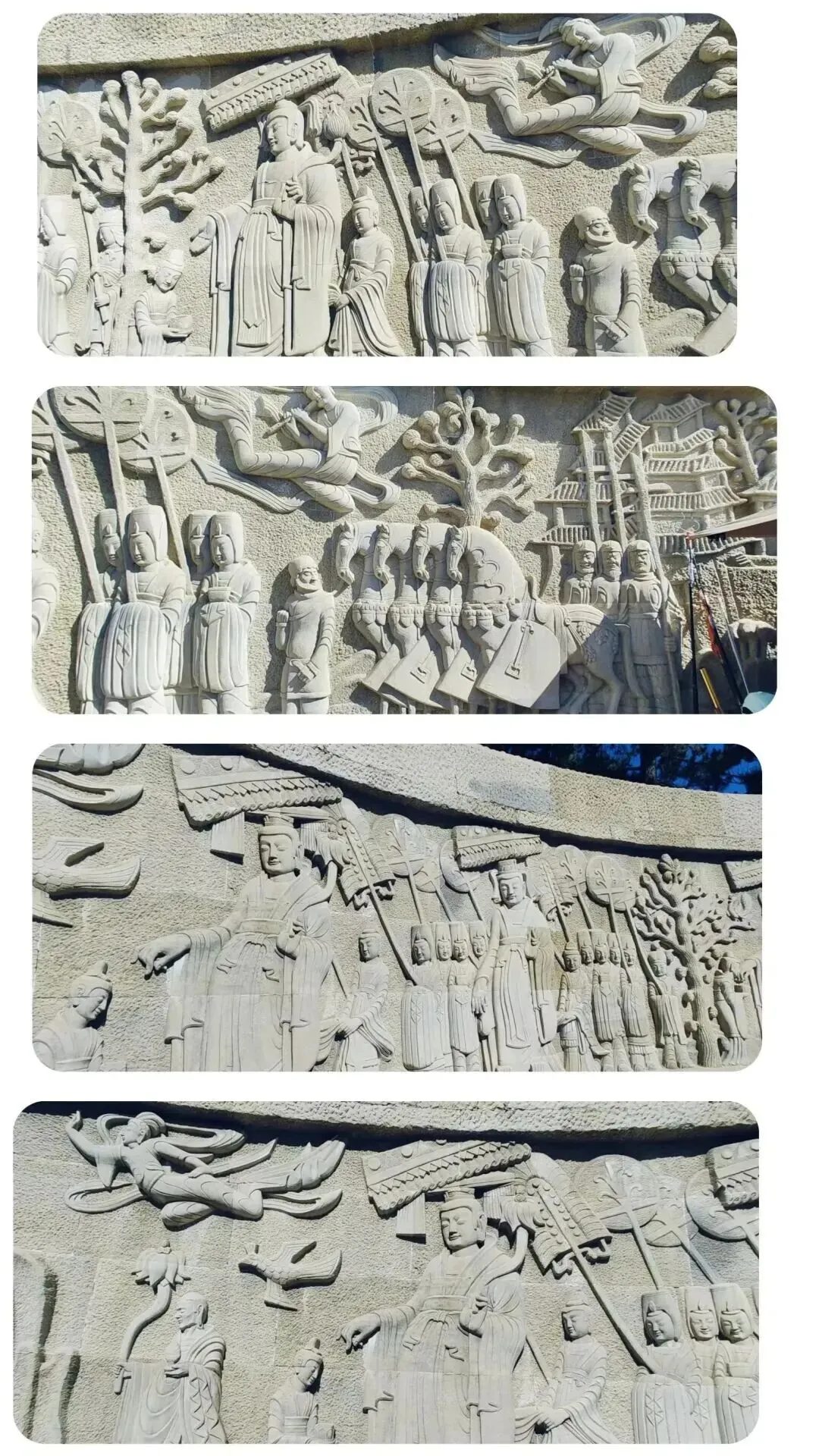 导游又让我们看礼佛大道两边的半圆形浮雕墙即“帝后礼佛图”,墙上人物像刻画的栩栩如生,据导游介绍,这面墙雕刻的是北魏皇帝、皇后当年前去礼佛的盛大场面。