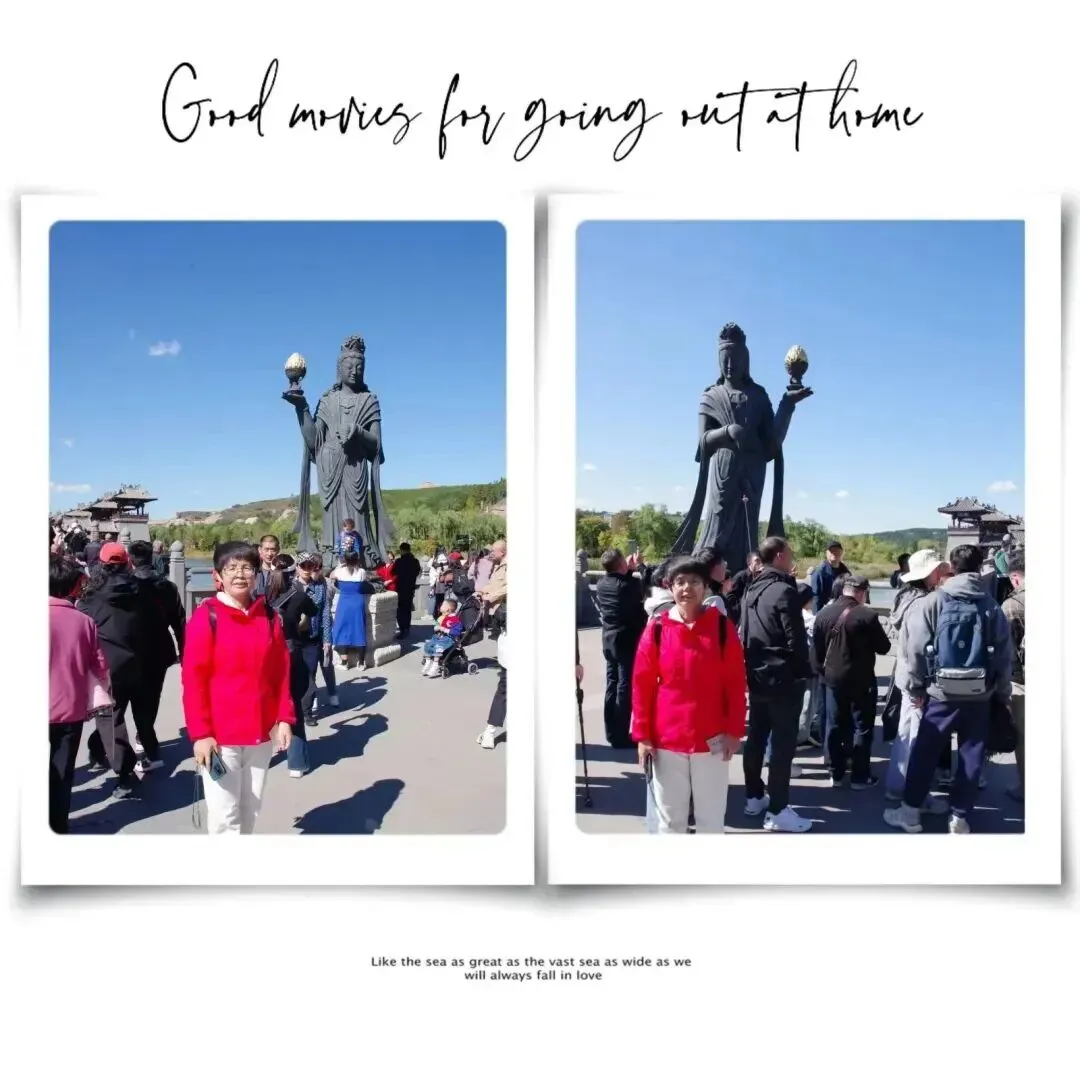 匆匆拍下“礼佛图”,赶紧加快脚步,去追赶导游。一片宁静的湖水映入眼帘,湖水之上,一座七孔石桥横跨两岸。桥的两侧,各有一尊手托莲花的菩萨雕像静静伫立,默默守护着这片神圣的净土。