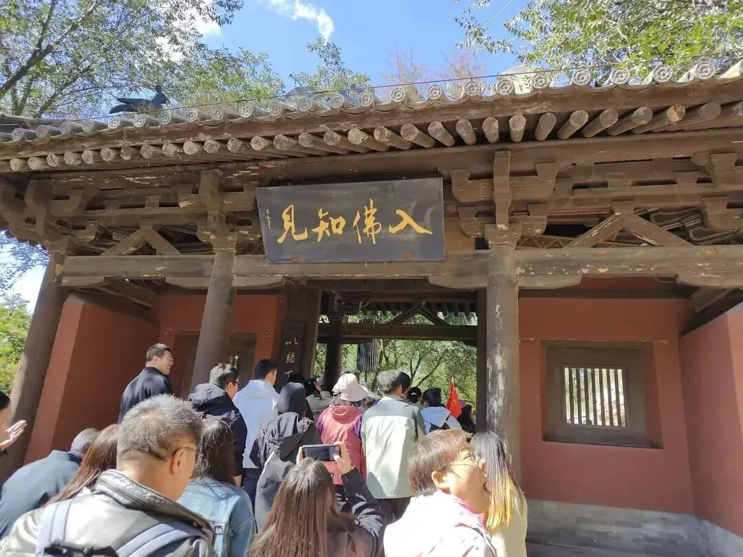 我们站在一个十字路口不知道如何走,同行的50多人也只剩下十几个,大家一商量,也别找导游了,我们时间有限,随便走走看看得了,跟着导游还要总找人,并且人多时也啥都听不清。 一个转弯,前方出现一道山门,门上挂着“入佛知见”横额,向前不远就是石窟群了。带着对北魏佛教文化的好奇,我们朝着核心区域继续探寻,满心都是期待。