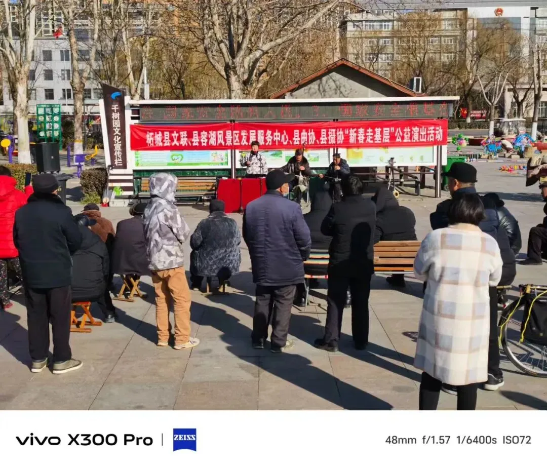 台下的观众有白发苍苍的老人,有活泼可爱的孩童,还有带着家人前来游玩的游客。大家或驻足聆听,或拍手叫好,或跟着曲调轻声哼唱,现场欢声笑语不断。一位家住景区附近的市民感慨道:“这样的演出太接地气了,听着熟悉的乡音,感觉年味儿一下子就浓了!”