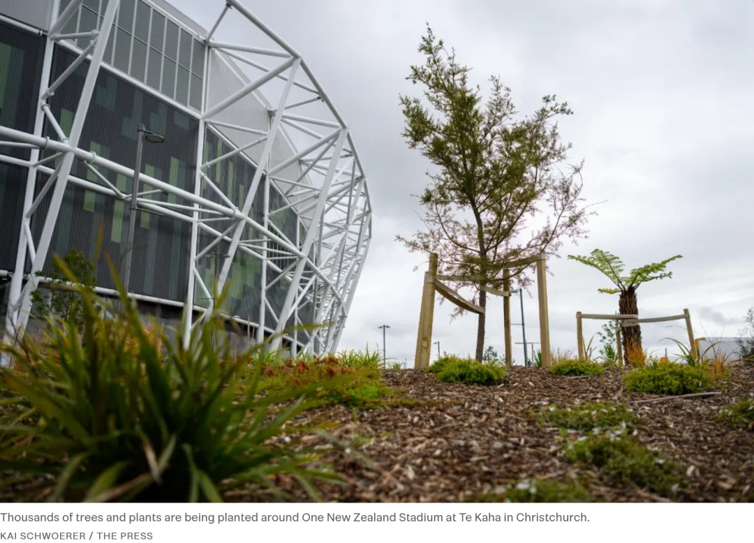 基督城Te Kaha新体育场(One New Zealand Stadium)周边的绿化工程近期遭遇挑战。该项目计划种植约13,000株树木与植物,目前已完成约9,700株,但其中已有450株死亡,损耗率约为4.5%。尽管这一比例仍在市议会预期的10%自然损耗范围内,但部分损失原因引人关注。