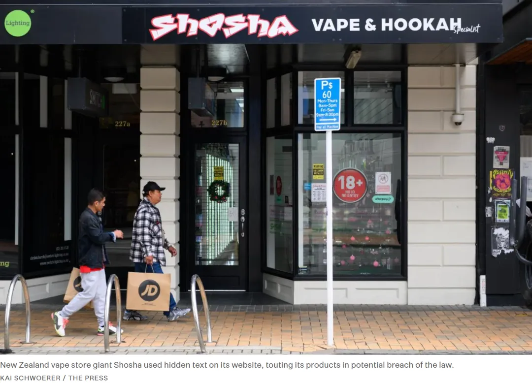 新西兰最大电子烟零售商Shosha被指控违反该国去年实施的严格电子烟广告法规。据监督组织Vape-Free Kids NZ发现,Shosha网站疑似使用与背景同色的“白色文字”隐藏产品描述,这些文字虽对浏览者不可见,却能提升网站在搜索引擎中的排名,从而间接推广法规明文禁止描述的产品特性(如“可重复注油”、“一次性”等)。