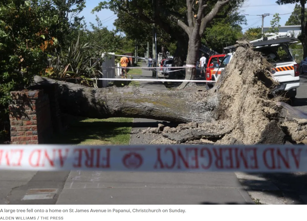 6.强风袭南岛:基督城老树砸穿屋顶,多地道路关闭断电