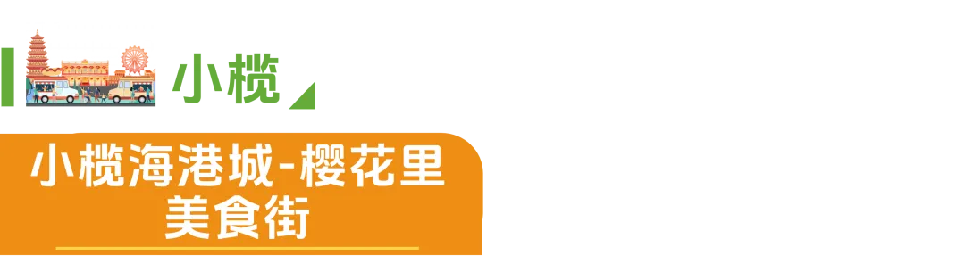 以海港城、樱花里为中心,打造3分钟美食生态圈,集美食、艺术、娱乐、购物于一体。在这片多元特色美食街内,海港、小榄人家、中兴行、叙轩、粤感海、菊城里等知名新派粤菜名店与樱花里内创意潮流美食店竞相绽放,既可以品尝到菊城美食文化四大宴、小榄炸鱼球、菊花肉等传统特色美食,也可以打卡日式料理、韩式烤肉、意大利风味等网红美食,满足家庭休闲美食聚会和时尚达人味蕾探索需求。