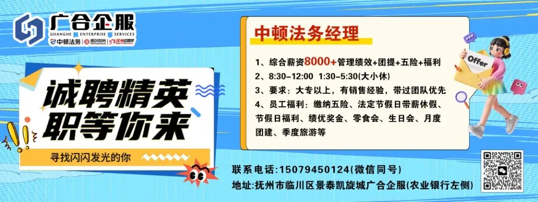 ⛳联系地址:抚州市临川大道景泰凯旋城(抚州广合企服)