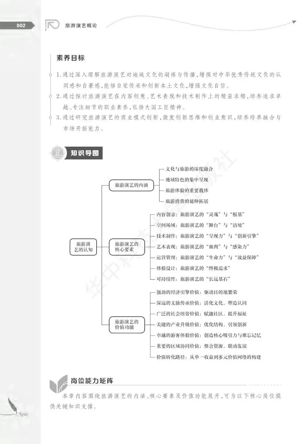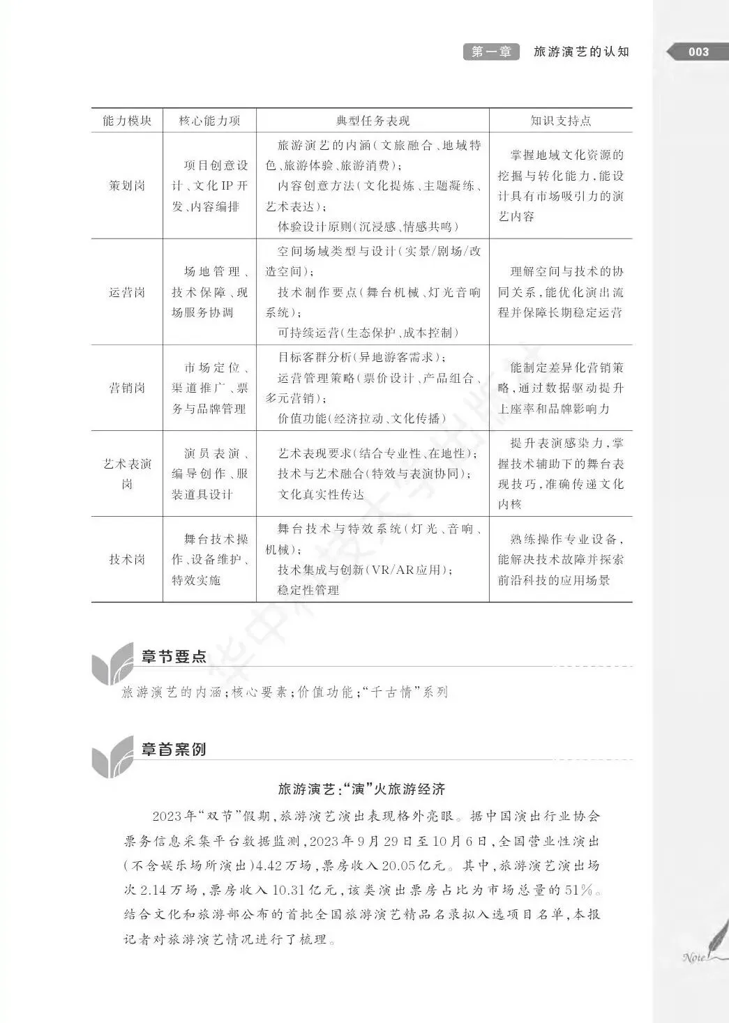 本书既可以作为职业院校旅游相关专业的理论教学与实践指导用书,也为行业从业者提供了丰富的参考借鉴,旨在培养兼具文化自信、创新思维与实操能力的复合型文旅人才,推动旅游演艺产业的高质量发展。