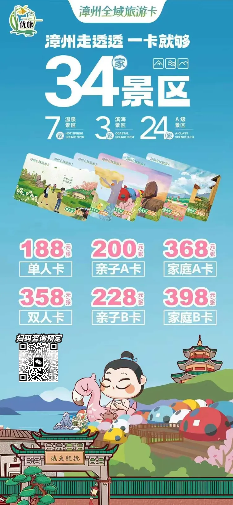 【景区新增至36家】漳州全域旅游卡|¥188元=30多家景区 !平均1个门票不到6元!周末通用~玩1次就回本~