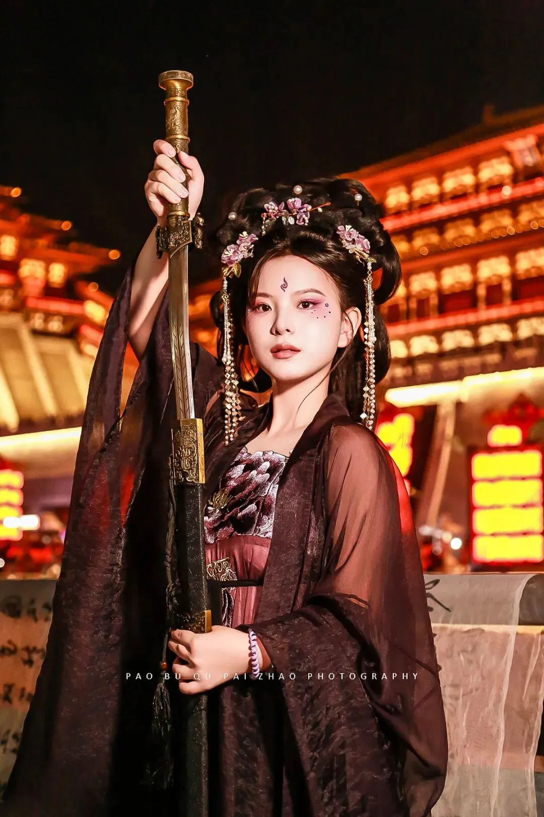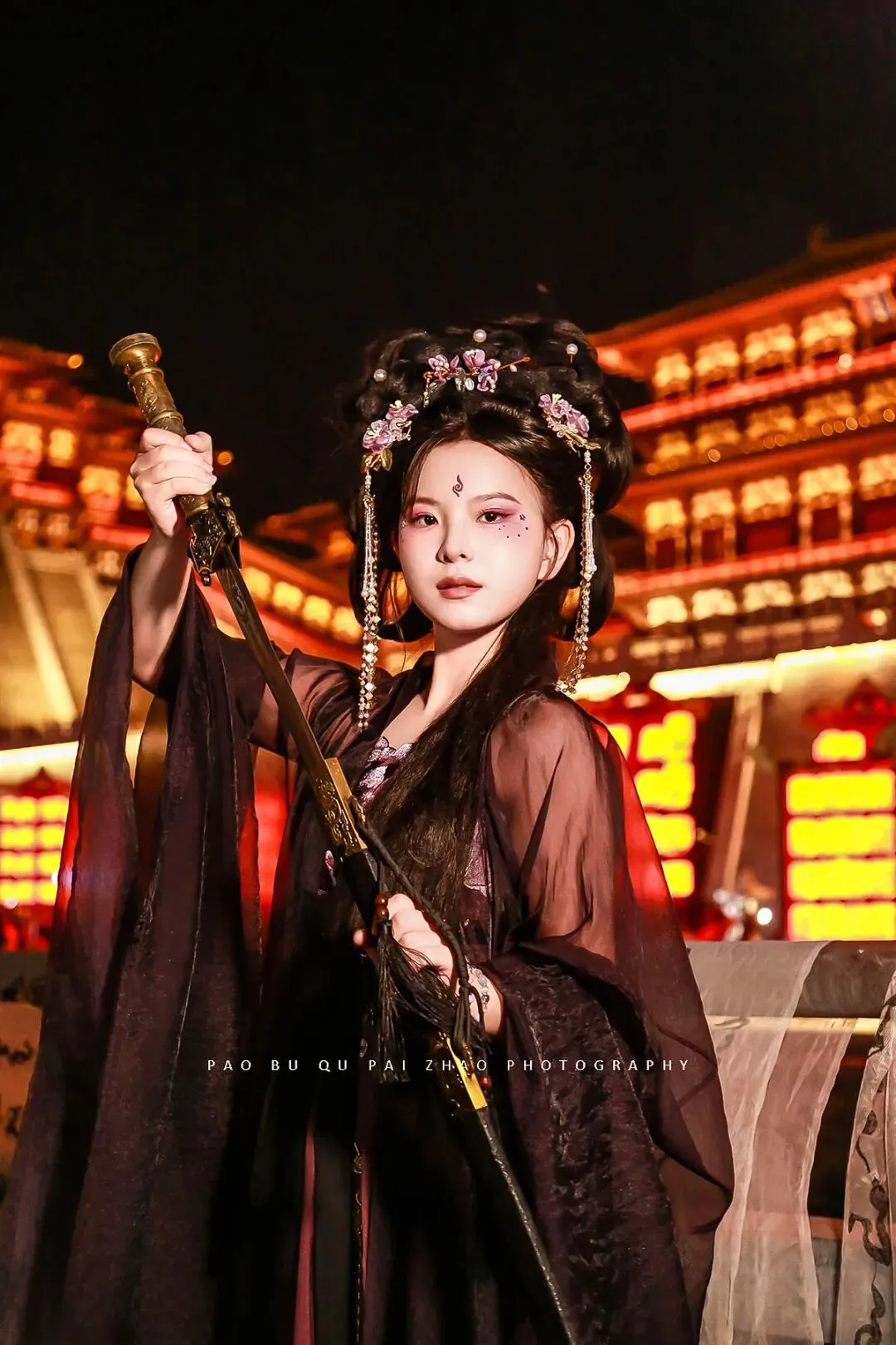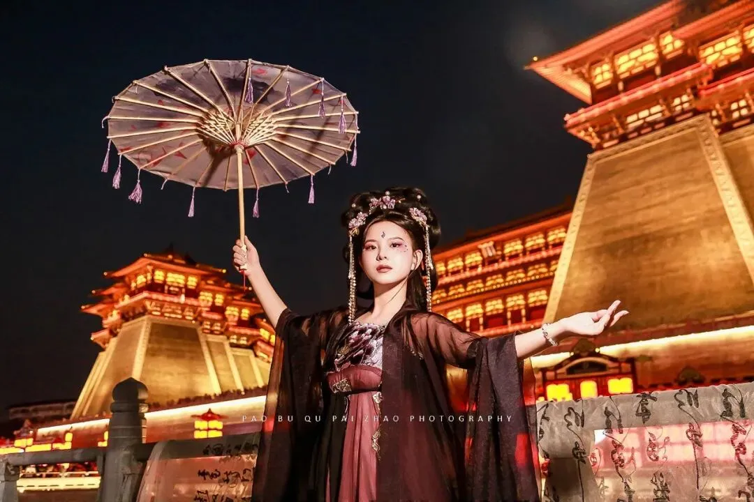 【旅游跟拍】洛阳应天门古装侠女夜景跟拍 客片