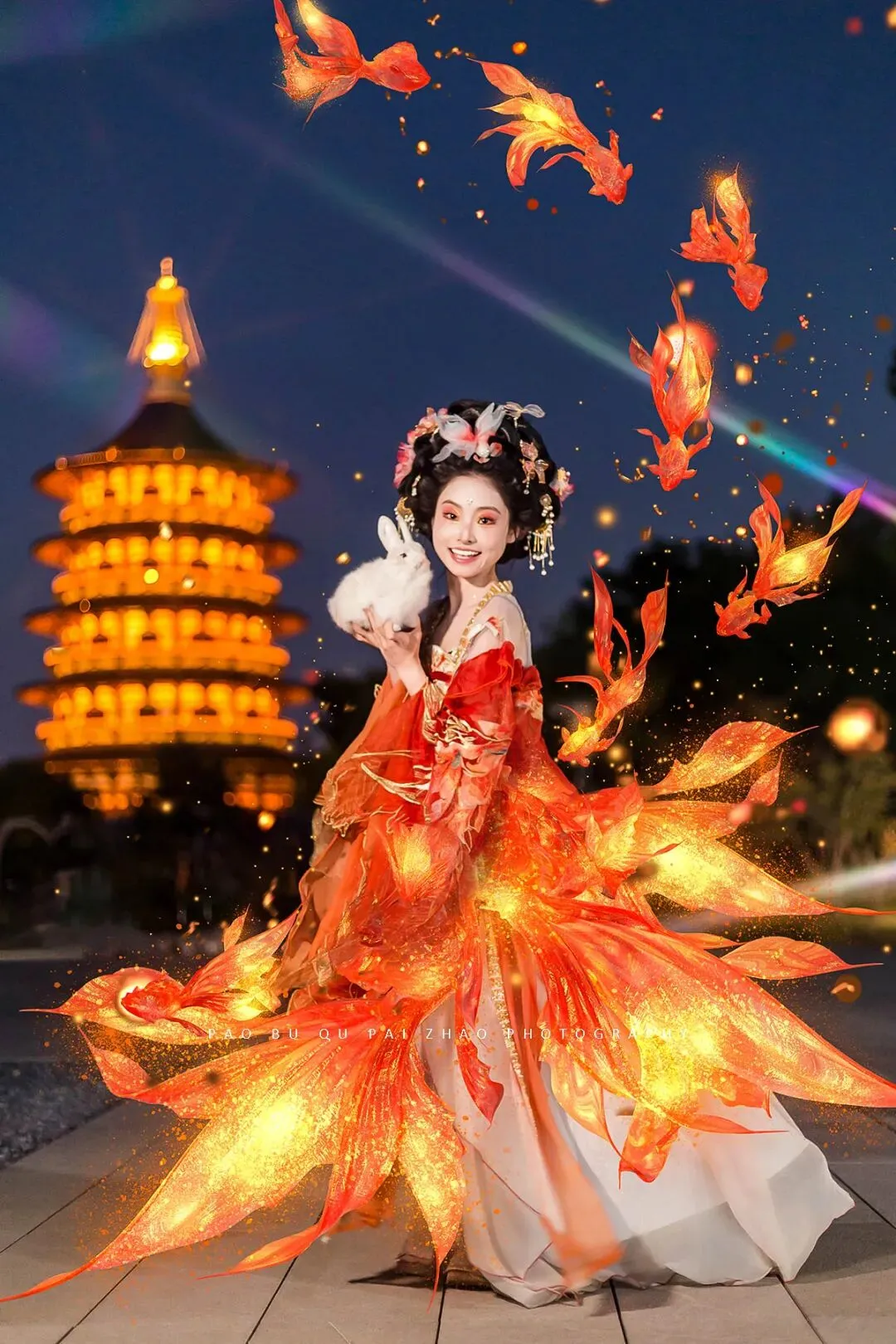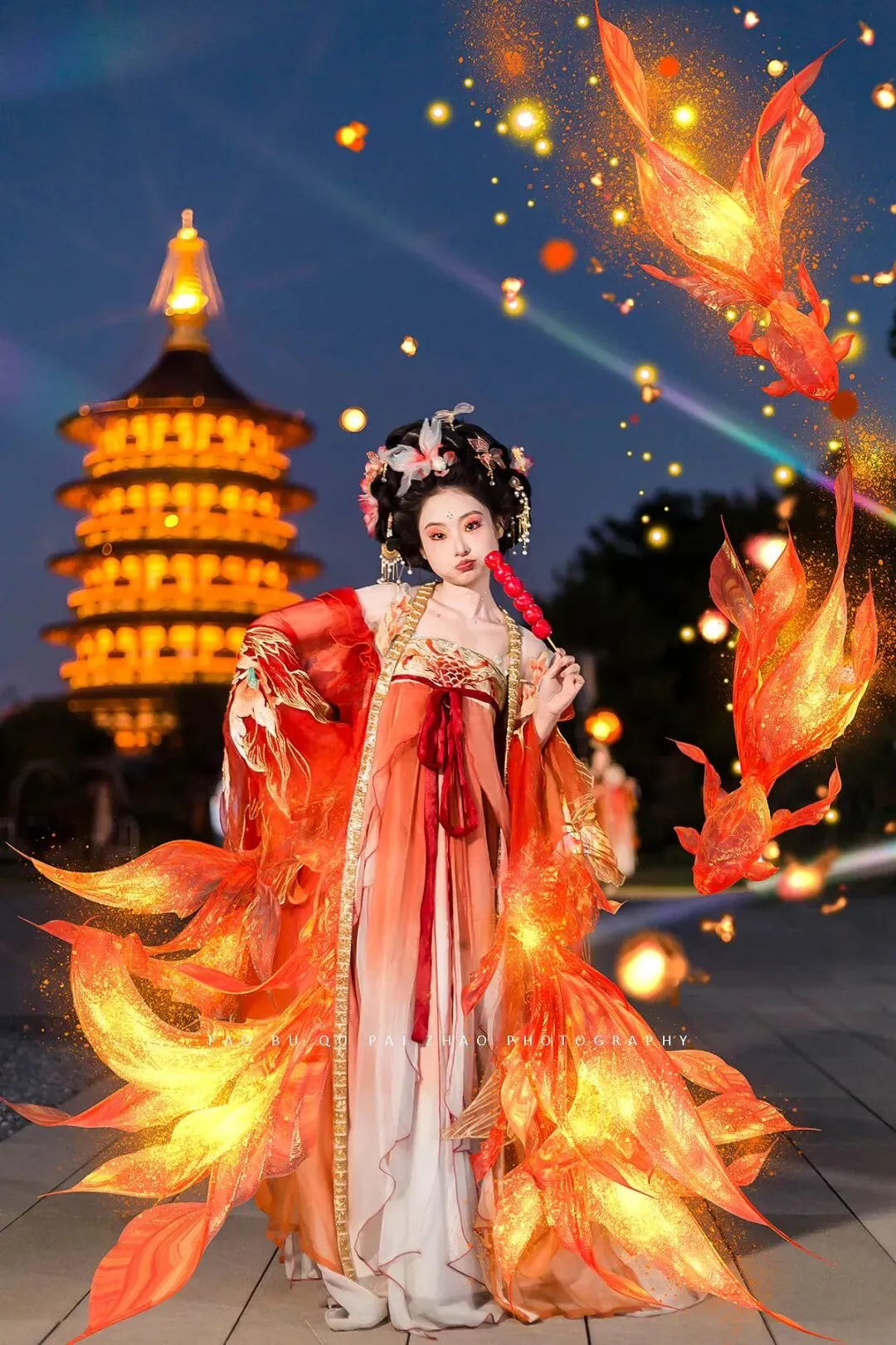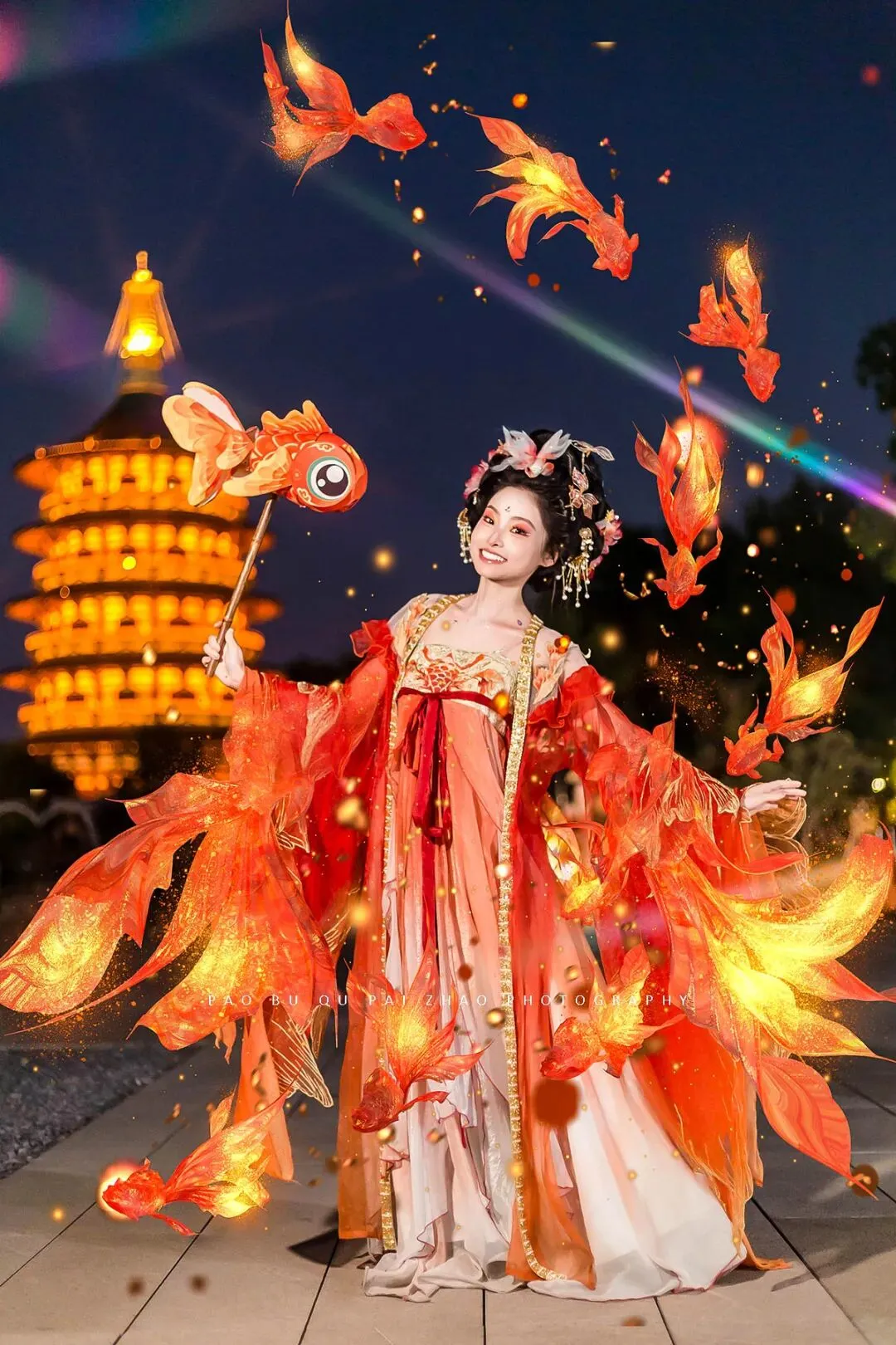 【旅游跟拍】洛阳九州池 锦鲤装造夜景跟拍 客片