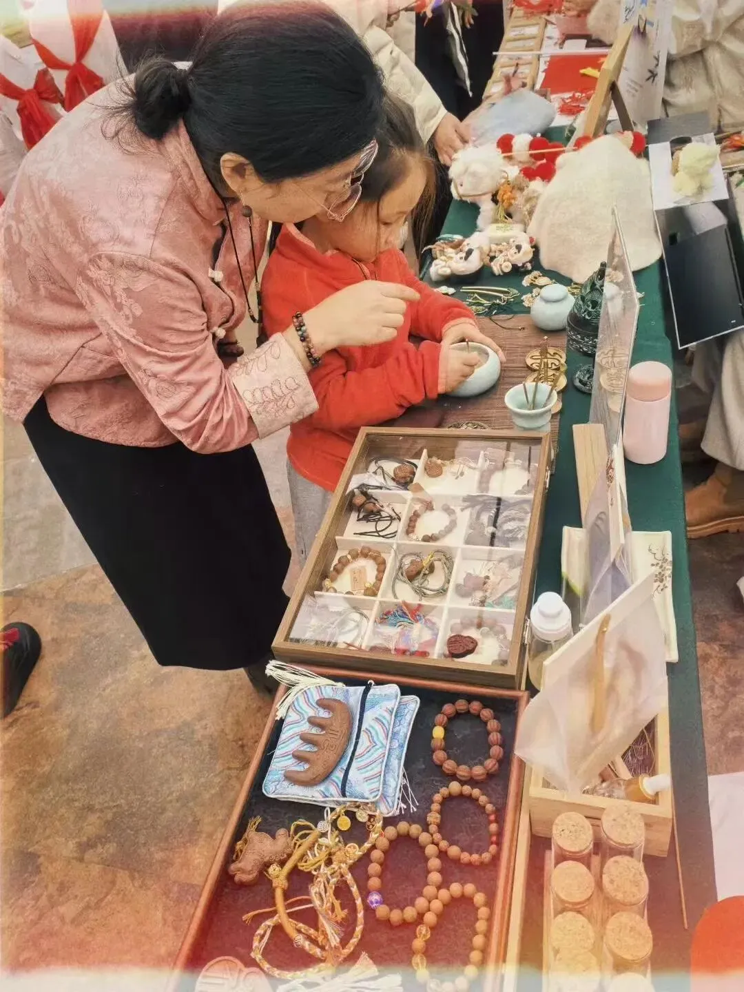 活动现场,传统乌拉黄氏剪纸、传统泥塑艺术、传统插花技艺、满族年息香制作技艺、吉林羊毛毡擀毡技艺等多项极具地方特色的非遗项目集中展示,张莲燕、李玉芹、王欣欣、谭利霞、孙海波五位非遗传承人齐聚现场,各展所长,为游客们揭开传统工艺的神秘面纱。