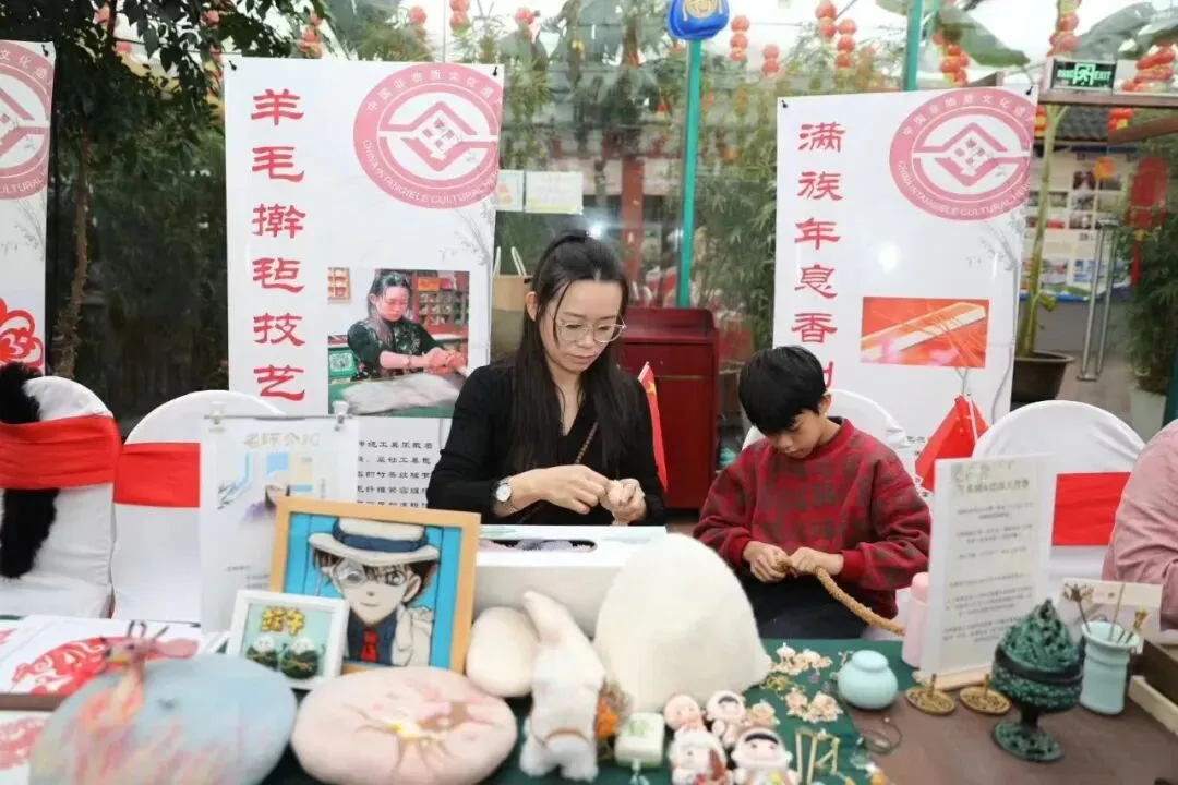 一把剪刀在传统乌拉黄氏剪纸传承人张莲燕手中翻转腾挪,不一会儿,一幅栩栩如生的剪纸作品便跃然纸上;吉林羊毛毡擀毡技艺传承人孙海波,将羊毛毡塑造成憨态可掬的瑞兽,引得游客们纷纷驻足欣赏、拍照留念;传统泥塑艺术传承人李玉芹的泥塑作品形神兼备,传统插花技艺传承人王欣欣的插花作品雅致灵动,满族年息香制作技艺传承人谭利霞的年息香制作工序精巧,各具特色的非遗技艺展演,让现场游客目不暇接。