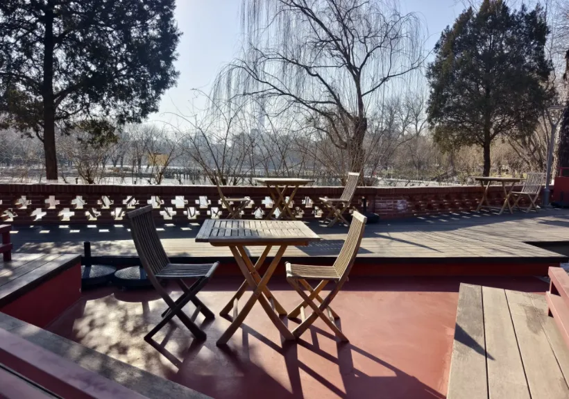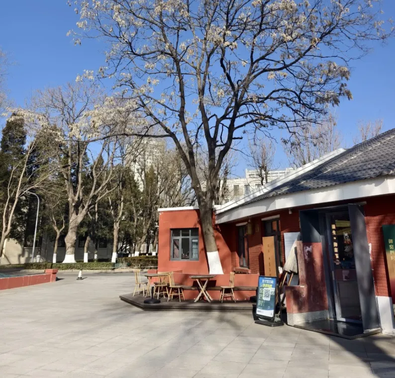 但真的没想到,一到农展馆后面就被惊艳到了,这里不仅有湖,有树,有花,还有很多的雕塑,还有这家茶坊。