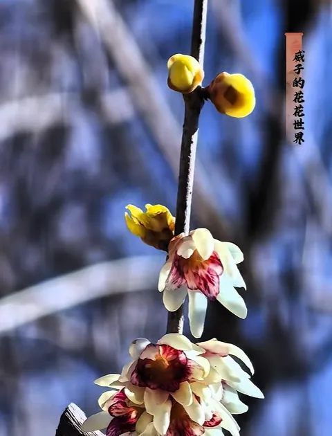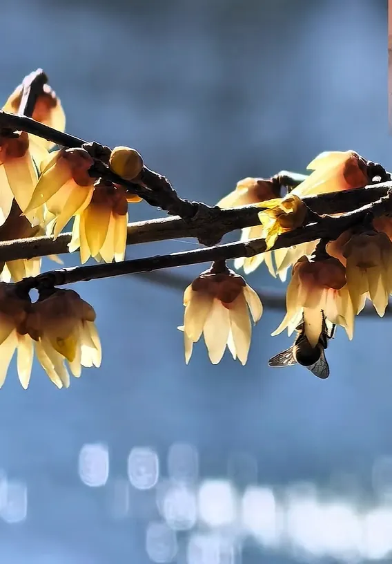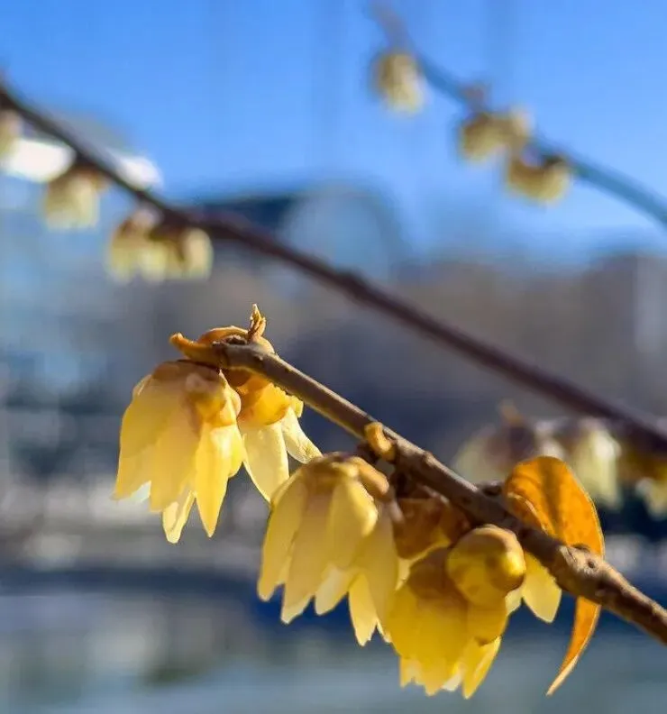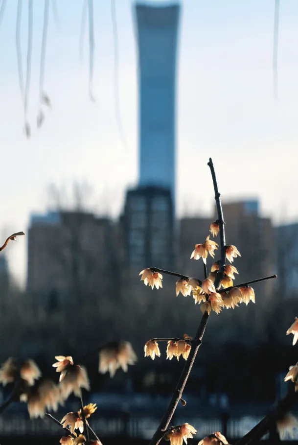 另外小编为什么说它独特呢?因为不仅仅是它就开在水边,与水面同框,还能拍到腊梅与北京最高楼中国尊同框,在北京怕是不太多见吧。