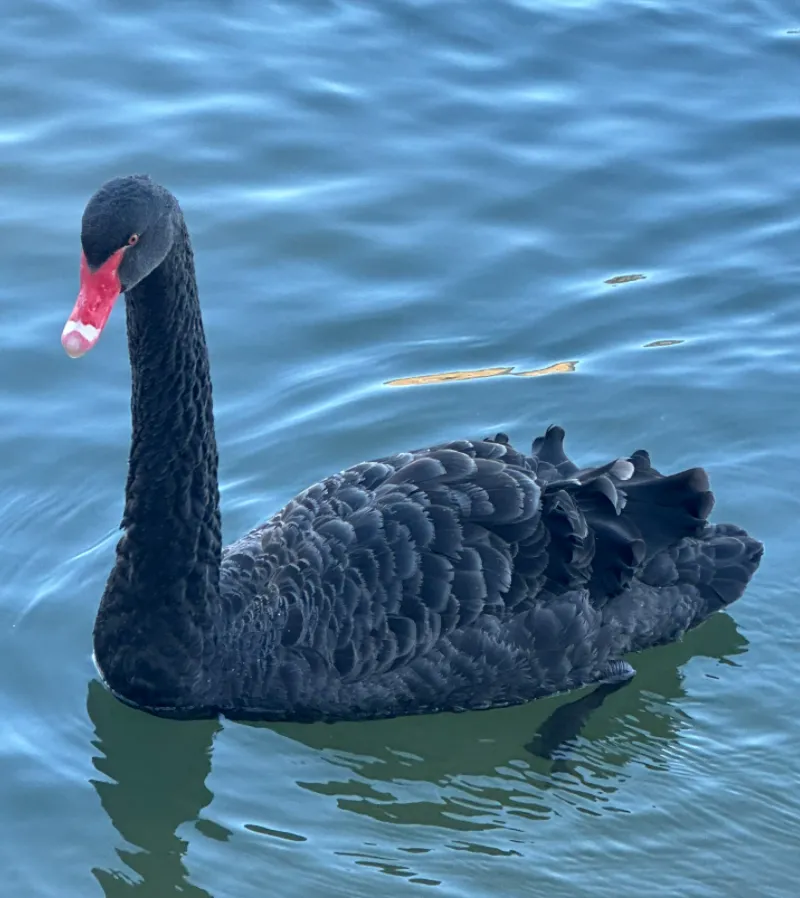 黑天鹅垂下高傲的头,顾影自怜,远处的一丛芦苇中,两只鸳鸯在卿卿我我,好一幅“冬日美景”。