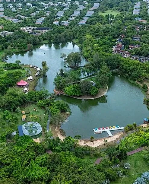 神州半岛三面环海,拥有东渥湾、金沙湾等多个特色海湾。白天可赶海、浮潜、打高尔夫,傍晚则推荐前往红白灯塔或科罗娜日落吧,看晚霞染红天际。半岛湖公园与桥海牧场更添生态野趣,动静皆宜,适合全家出游。