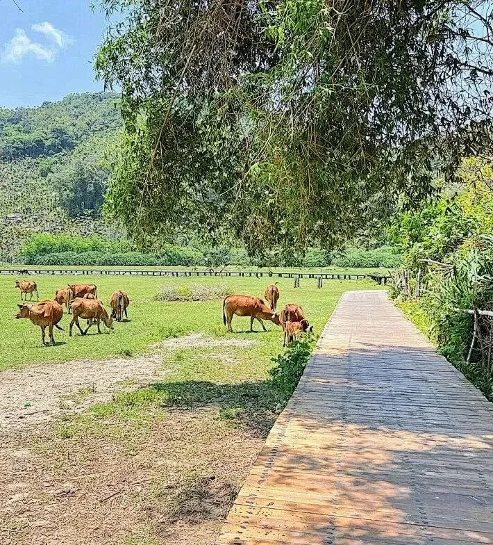 桥海牧场依山傍海,木栈道穿行其间,牛羊悠然吃草,远处海天一色。这里没有商业喧嚣,只有风吹草动与鸟鸣虫唱,营造出世外桃源般的宁静。适合喜欢田园牧歌式体验、追求心灵放松的游客短暂停留。