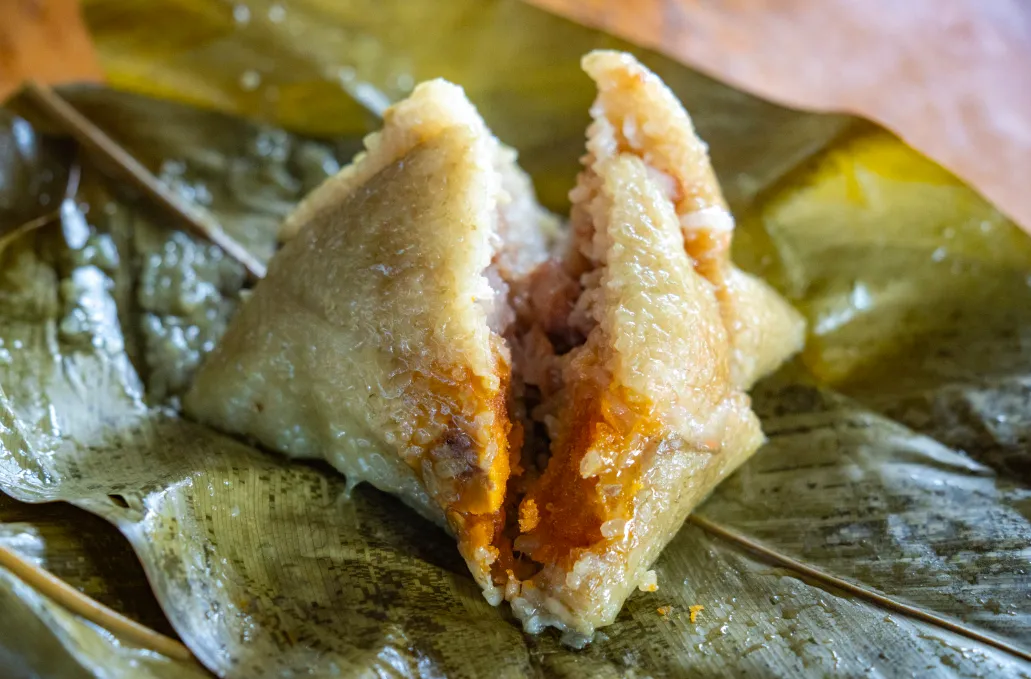 和乐粽用太阳河糯米、黑猪肉、咸鸭蛋黄包裹,以木柴慢煮四五小时。粽叶清香渗入米粒,肥肉化而不腻,咸香软糯。作为海南四大名粽之一,一口下去,尽是万宁人家的烟火温情。
