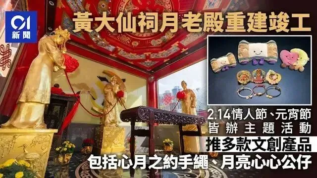 其实早在2011年,啬色园黄大仙祠就已经奉祀月老及“佳偶天成”神像,一直都有不少人前来参拜。