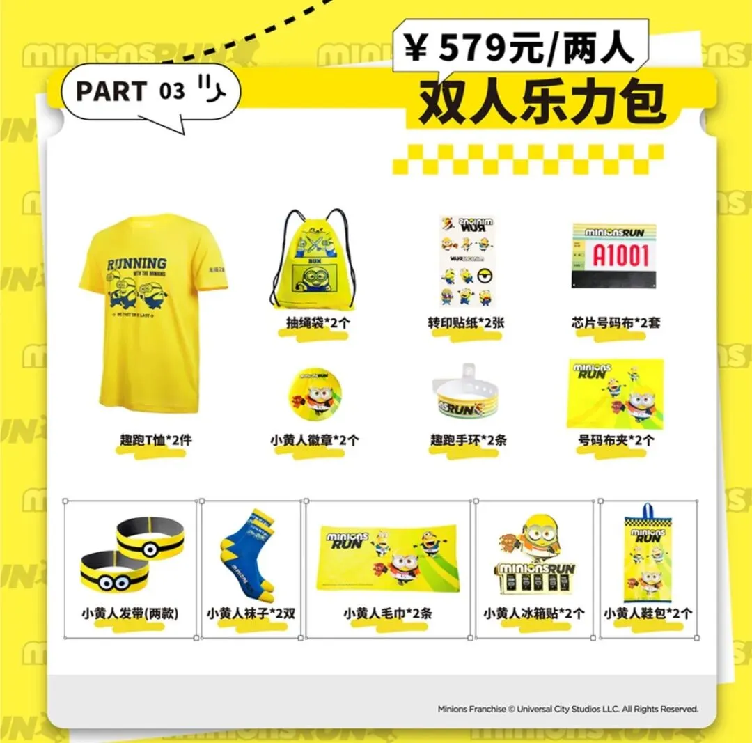 活动结束后,参赛选手可获得完赛奖牌、小黄人手提袋、能量补给等完赛物资,还可赢取丰富好礼,此外还可下载电子证书,带着欢笑与回忆满载而归!