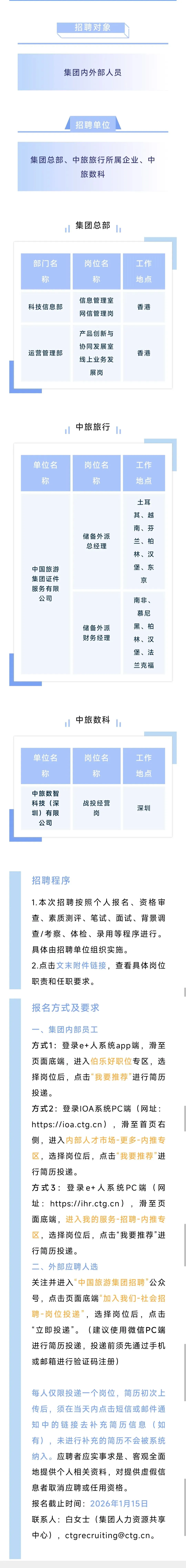 中国旅游集团总部及所属企业岗位公开招聘(社招有岗)