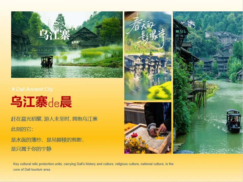 接机之后乘车(车程约1.5小时)前往【乌江寨】,踏入乌江寨,仿佛穿越时空,走进了一幅古朴而典雅的山水画卷。这里,青山如黛,绵延起伏,宛如大地的绿色屏障,守护着这片宁静的土地。乌江从寨中蜿蜒而过,江水碧绿,波光粼粼,倒映着两岸的吊脚楼和蓝天白云,构成了一幅天然的水墨画卷 。白天是山水画卷, 晕染着江南烟雨独有的水墨意境。夜幕降临,又像是闯入千与千寻的动漫世界,乌江寨的璀璨夜景令人惊叹。晚上入住乌江寨景区酒店。