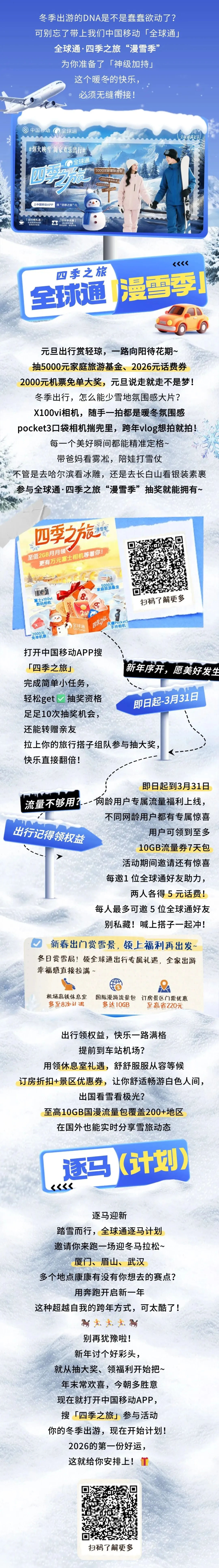 成渝德眉资五地旅游景区门票互抵活动:即日起至2026年2月28日,游客凭本人7日内在成渝德眉资五地任一参与活动景区核销使用过的门票,到另四地参与活动的景区购买门票时,可享受首道门票(成人全票金额)五折优惠(仅限本人使用)。具体优惠政策以景区公示情况为准。