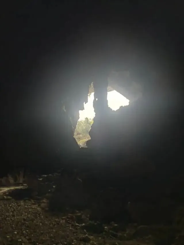 (洞外和进洞入口) 入口看似很小实际上一点也不大,进入后是另外一个世界,空间很大,沿途中有大部分钟乳石裸露在表面,洞顶时不时落下水滴,滴在钟乳石上方互相交映;突然转头看向洞口,发现有入口处还是爱心的形状,不过说是肺要跟形象点哈哈哈哈哈。