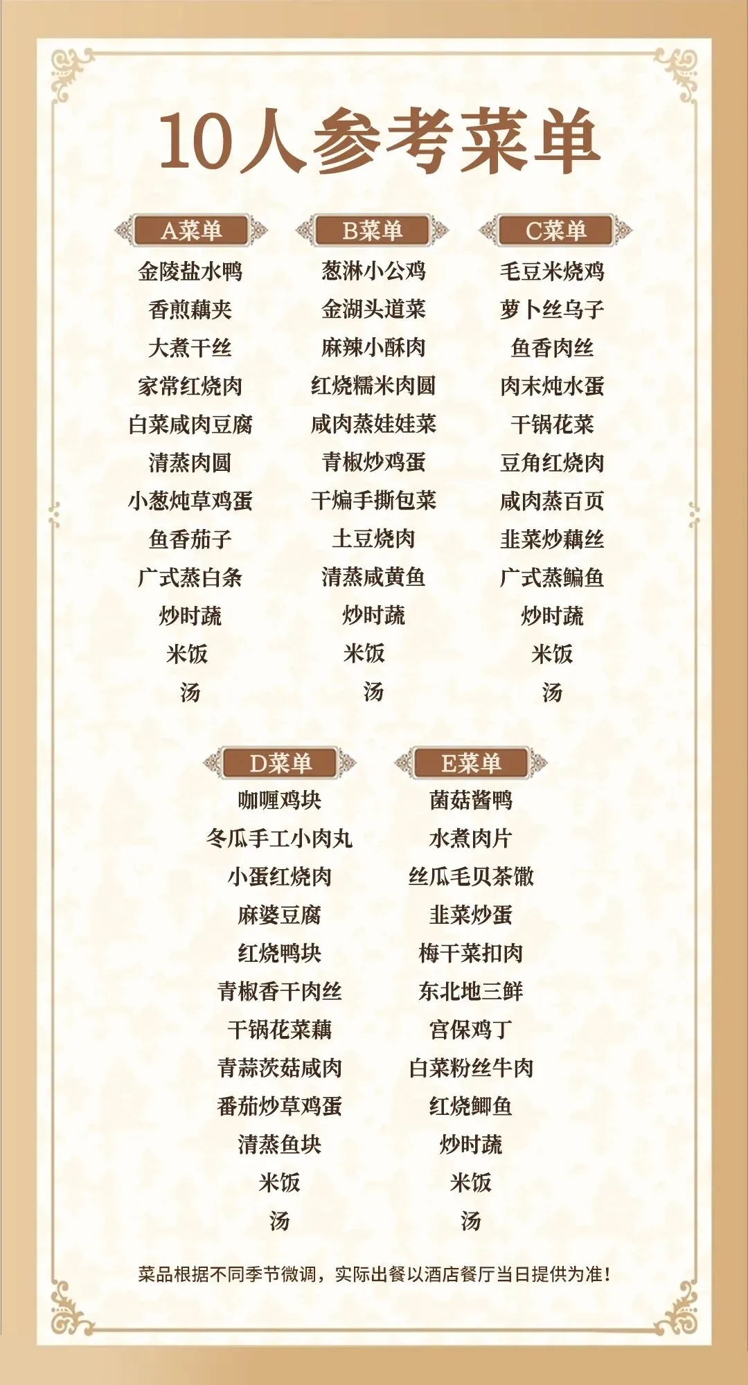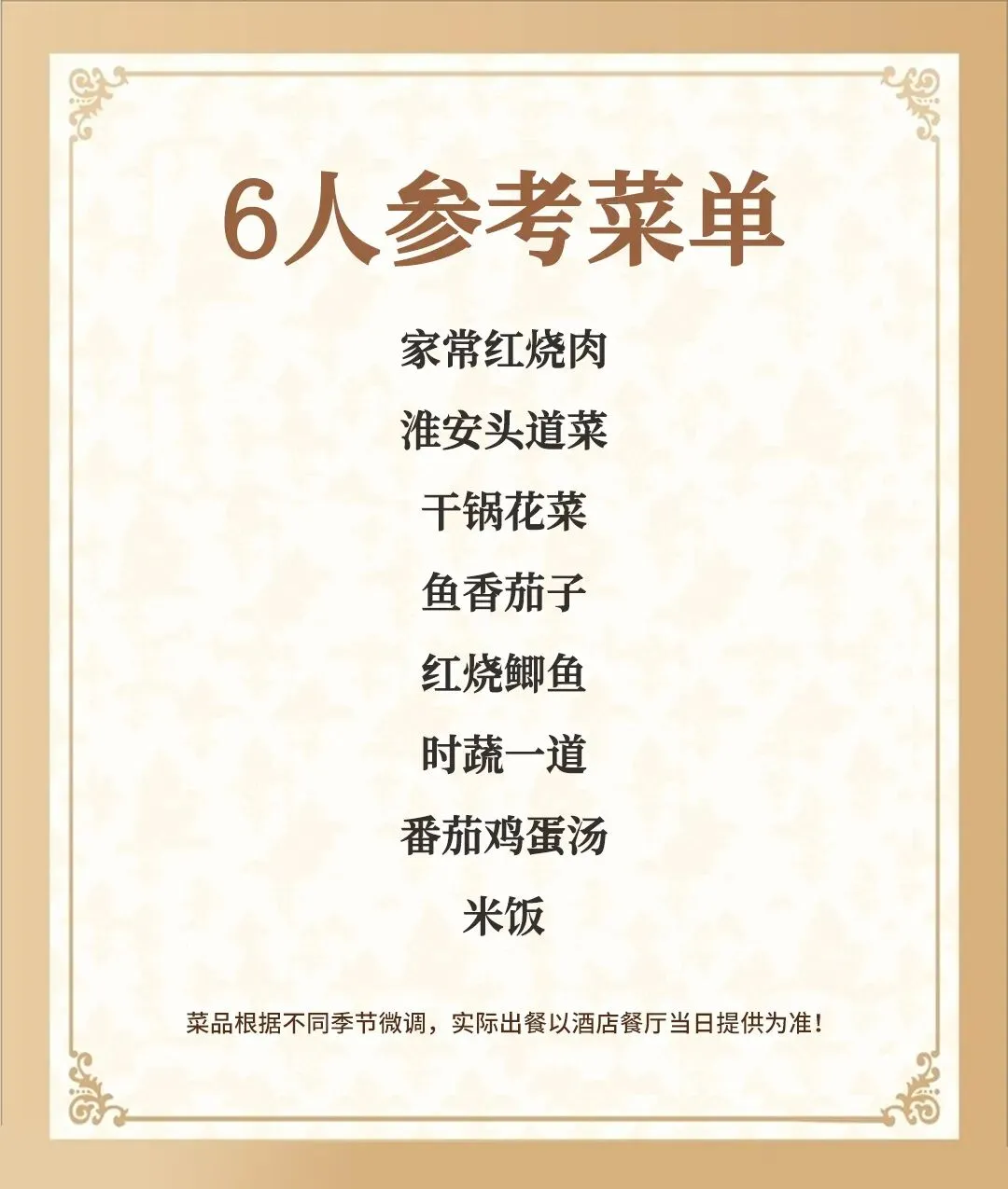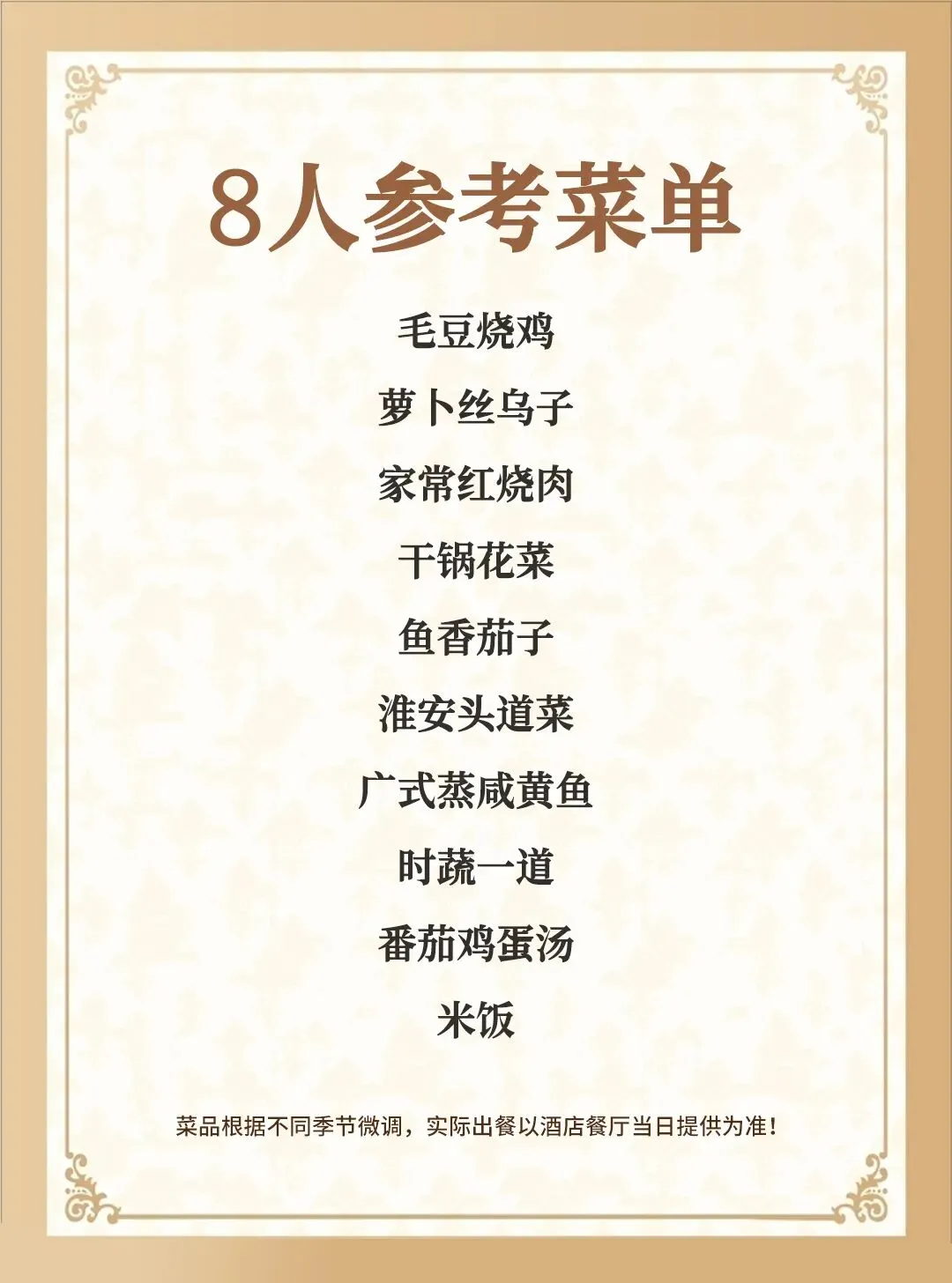 注:以上菜单根据人数增减调整菜单(菜单随机,不指定)