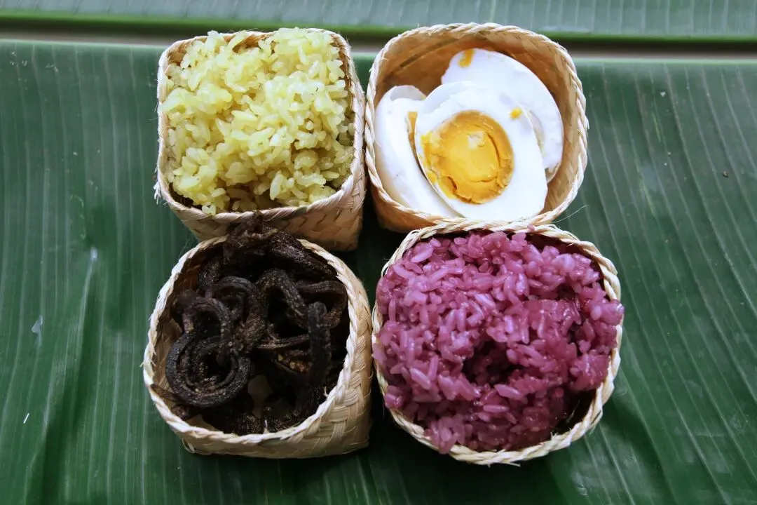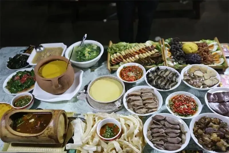 哀牢山的滋味,是山水滋养与岁月沉淀的双重馈赠。必尝的戛洒黄牛汤锅源自茶马古道马帮饮食,牛骨、牛肉、牛杂大锅慢熬,搭配20余种佐料调制的灵魂蘸水,鲜醇入味,一口吞下山林的元气 。非遗美食秧萝饭,清香软糯的糯米饭,咸蛋适口的腌鸭蛋,还有干香耐嚼的干黄鳝,藏着花腰傣的浪漫情愫;耀南火腿经山林烟火熏制,肥瘦相间入口即化,满是阳光与草木的气息 。