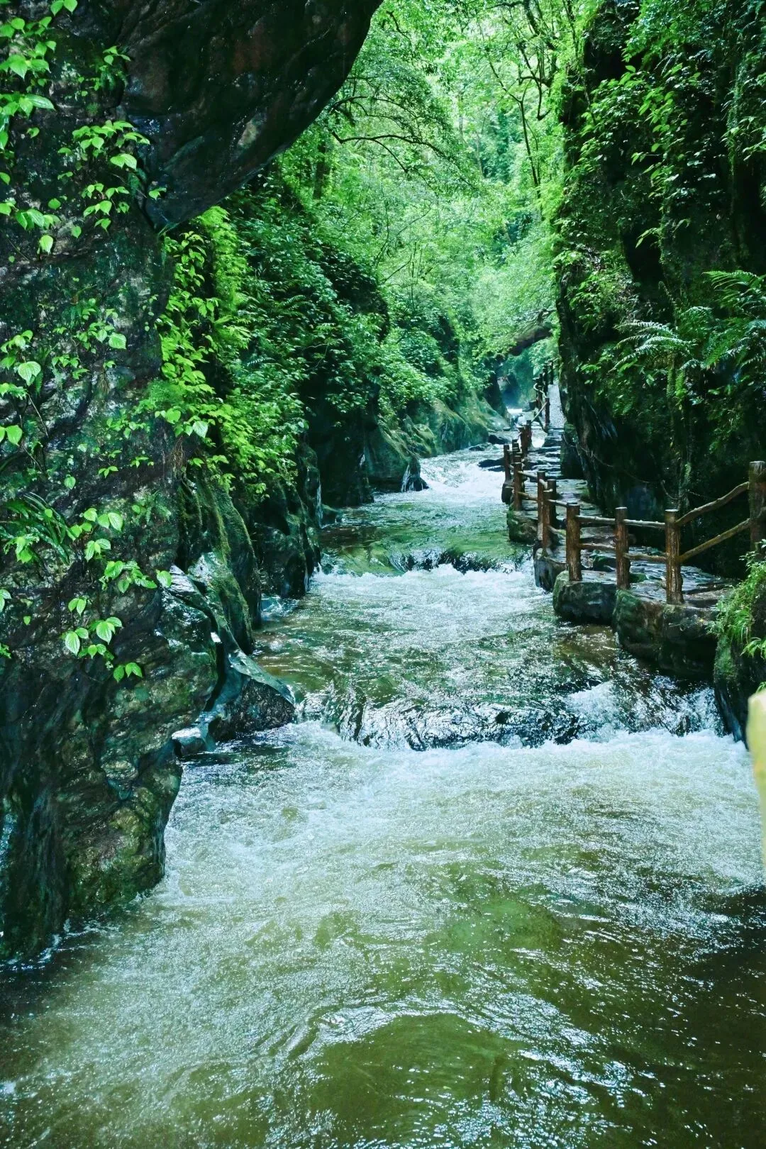 石门峡景区内2.6公里生态栈道沿溪流蜿蜒,逆流而上可邂逅清潭、瀑布与一线天,看峭壁古藤缠绕,听泉水叮咚作响,让身心彻底融入自然。