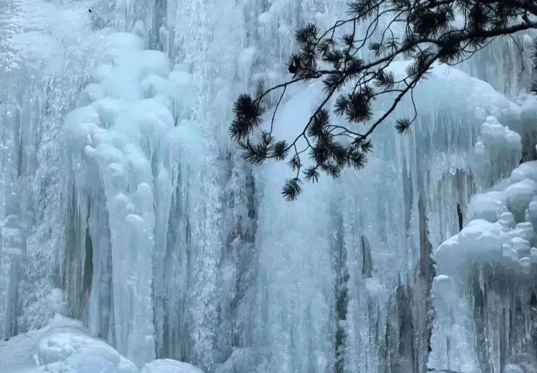冰瀑有的高度超过20米、宽度约10米,形态各异,有的如水晶帘幕垂落,有的似冰笋从石缝中“钻”出,半冰半水的溪流暗涌,偶尔传来冰裂的脆响,为静谧山谷添了几分灵动。忽然,一只拖着蓬松尾巴的小松鼠从松枝上跃下,又敏捷地窜进石缝中,引得孩子们一阵惊呼。