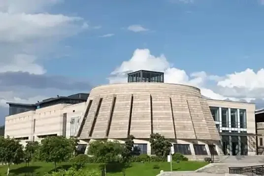 广东中国客家博物馆,国家一级博物馆,位于梅州市梅江区东山大道2号,地处梅江河边客家公园旁。广东中国客家博物馆是中国首家全面展示客家民系文化渊源与发展,系统收藏、整理、研究、展示客家历史文物与客家民俗文物的国家二级综合性博物馆。博物馆馆区占地170亩,建筑面积3.7万平方米,由主馆客家博物馆、分馆黄遵宪纪念馆、梅州市非物质文化遗产展示馆、梅州华侨馆、梅州大学校长馆、梅州将军馆、梅州名人廉吏馆、客家匾额馆以及《客家文博》杂志社组成。截至2016年,广东中国客家博物馆馆藏有国家二级、三级文物数十件,如该馆藏的孙中山楷书“博爱”(君勉上款)书法作品一幅,属于国家二级文物;两件国家三级文物——清光绪青白釉把手盖盆两件和清木活字粒一套。在“地标围屋”展厅内,有一座乾隆十九年间(1755年)客家祠堂抬梁式梁架,呈品字型,通体呈暗褐色,梁上有贴金雕花图案,重达数千斤。据北京故宫博物院专家鉴定,其结构与清朝皇家建筑主梁架基本相同。