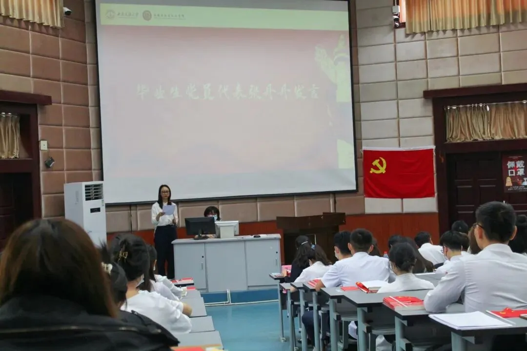 会议在庄严的中华人民共和国国歌中拉开帷幕,全体党员齐唱国歌,重忆入党初心,重新接受党性洗礼。首先,党委组织部组织科科长李博讲话,他深切寄语并叮嘱毕业生党员们,要不忘入党初心,牢记入党使命;要有家国情怀,感恩学校、奉献祖国;要充分发挥党员的先锋模范作用,为实现中华民族的伟大复兴贡献自己的青春力量。学院党委副书记孟庆强围绕党的宗旨和使命,号召全体毕业生党员要切实增强党员的荣誉感、责任感、使命感,站好最后一班岗,配合学校、学院做好毕业生的安全文明离校工作。毕业生党员代表张丹丹结合自己入选学校第七届研究生支教团成员的经历,分享了自己精彩的大学生活,表示将继续用党员的标准严格要求自己,传承红色基因,争做时代新人。
