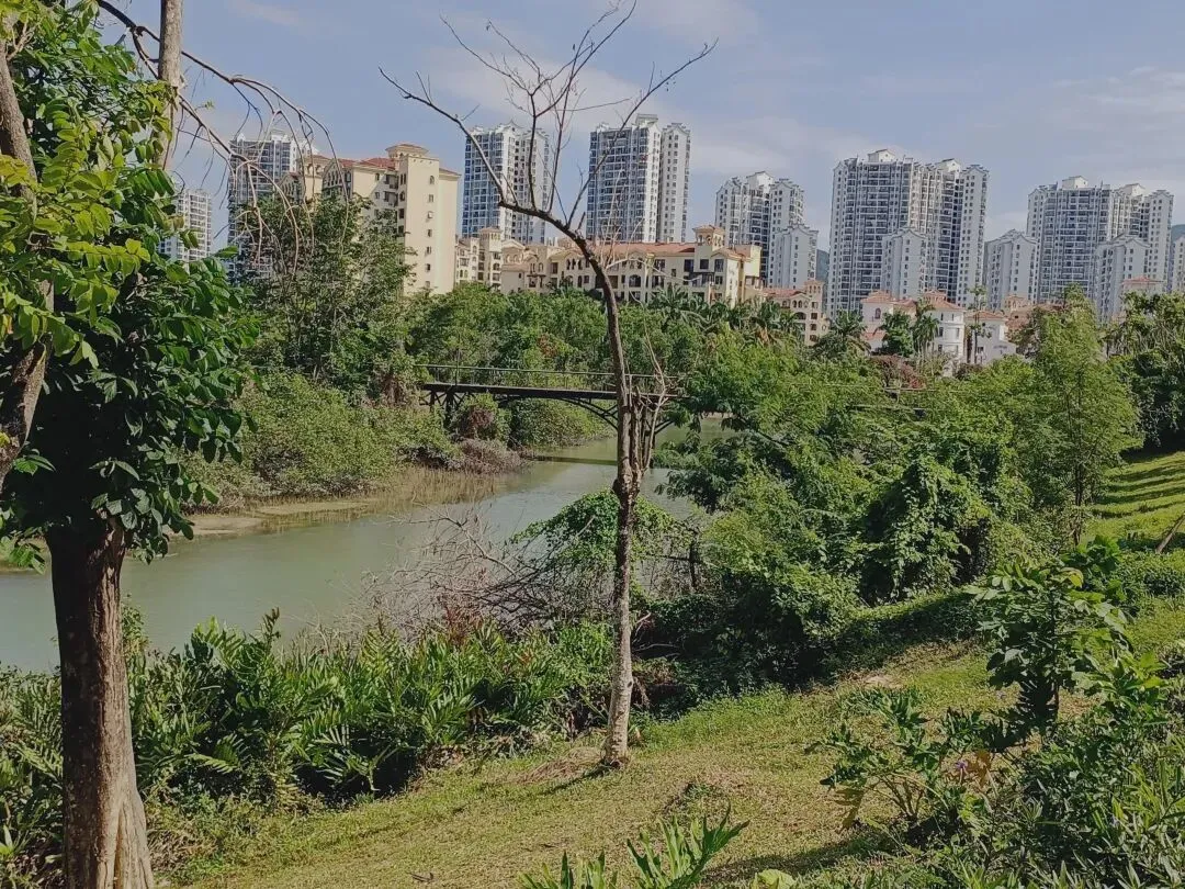 “草长莺飞二月天,拂堤杨柳醉春烟。”早春时节,春风迫不及待地吹绿了三亚河沿岸的草木,给宽阔的河流笼上一层薄薄的绿烟。河水长出了青青的蛙衣,在绿树后面轻轻荡漾。高大的椰子树、芒果树和低矮的风铃木、灌木丛,将鹅黄翠绿浓墨重彩地泼洒到河里,与青山墨绿色的倒影相映成趣。河边的草地上,遍地盛开着黄色的蔓花生,绵延不断地向前流淌。人们带着风筝,带着孩童,三三两两地来到河堤边,将快乐演绎成一首诗:“儿童散学归来早,忙趁东风放纸鸢。”