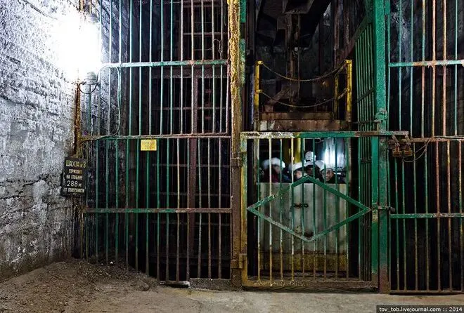 通过通风竖井,下行到深度为 288 米的旅游区。下降速度为 3.75 米/秒,仅需一分半钟,就已到达底部。