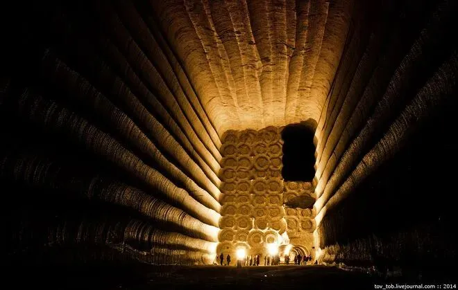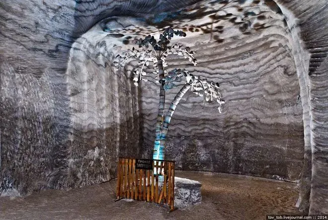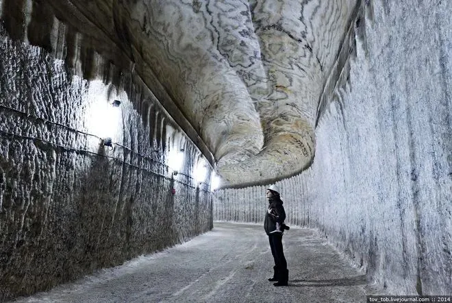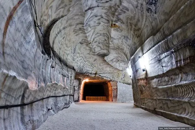 盐矿床在 2.5 亿年前开始从古代大海浅湾中形成,它位于现在的索列达尔遗址。矿井的墙壁和拱顶似乎被波浪覆盖, 这就是盐层在剖面中的样子,每层大约需要 10 万年才能形成。