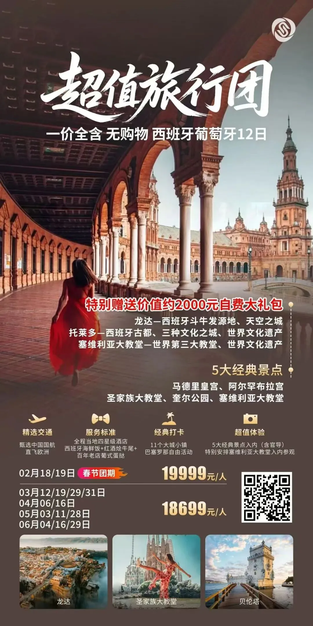 【超值旅行团】一价全含 纯玩无购物西葡