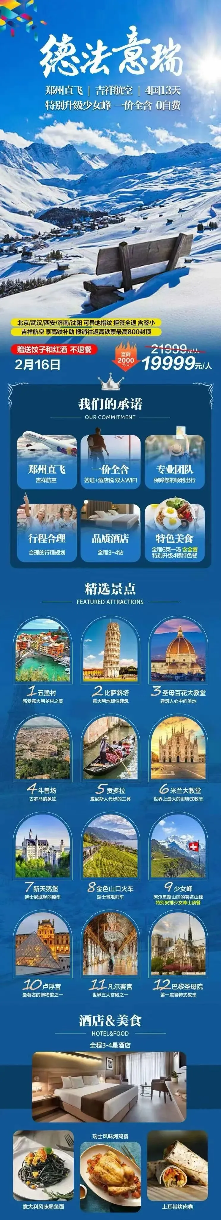 🏅郑州直飞 【德法意瑞4国13天】
