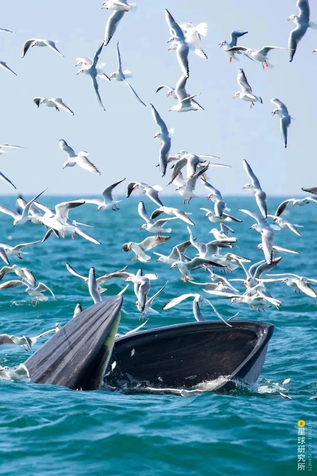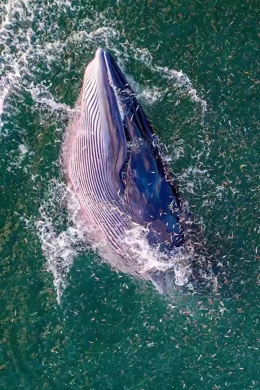 作为国内唯一能稳定观测到大型鲸类的海岛,这里的暖冬气候恰好适配布氏鲸的休养生息,北部湾海域丰富的棱鳀、沙丁鱼等鱼类,更让这片海域成为它们的 “干饭宝地”。