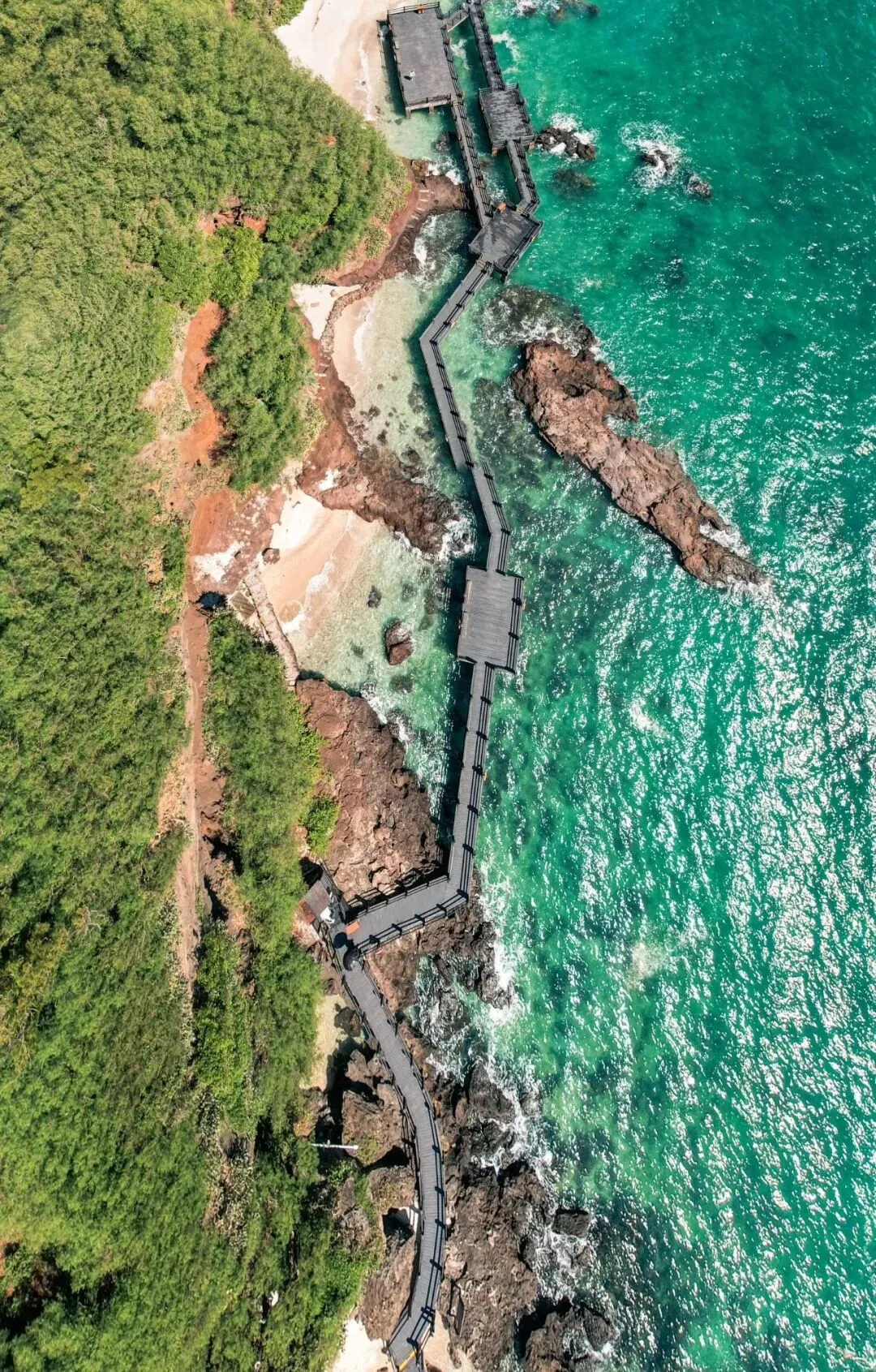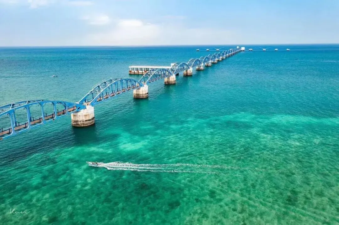 蓝桥的海水清澈见底,也是秋冬 “果冻海” 的至佳观赏地,阳光洒在海面上,呈现出晶莹剔透的蓝绿色。