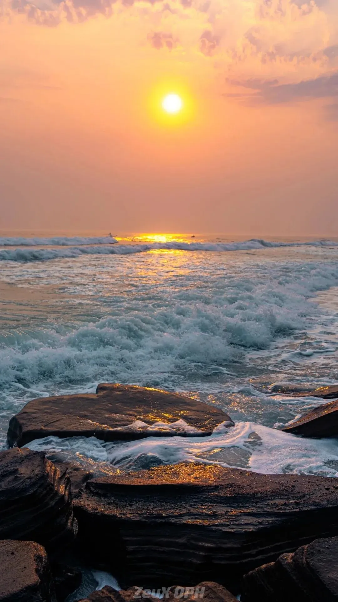想要邂逅涠洲岛的清晨,就去五彩滩赴一场日出之约。