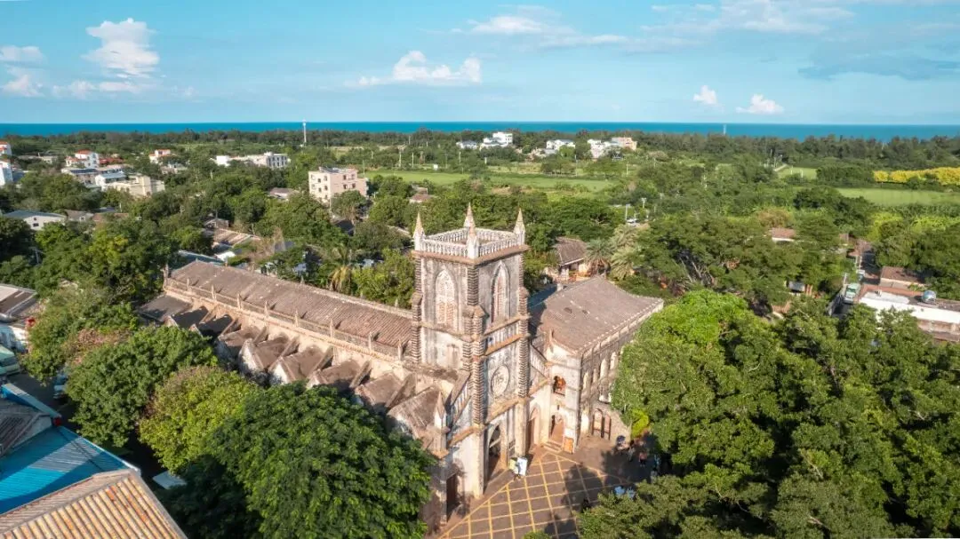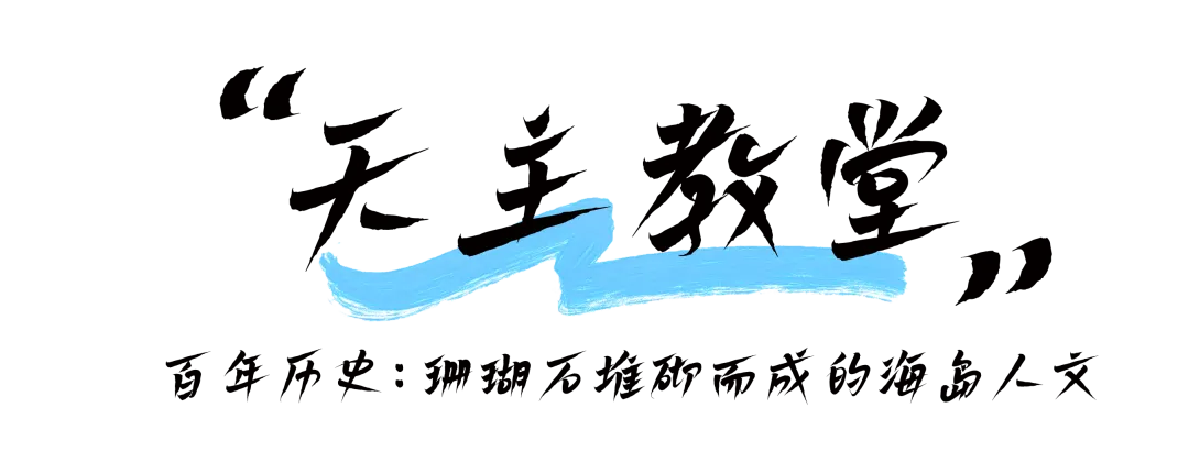 这座始建于 1853 年的珊瑚石教堂,是涠洲岛的人文地标。没有钢筋水泥的支撑,全靠当地的火山灰块石、珊瑚石与蛎壳灰砂浆砌筑而成。