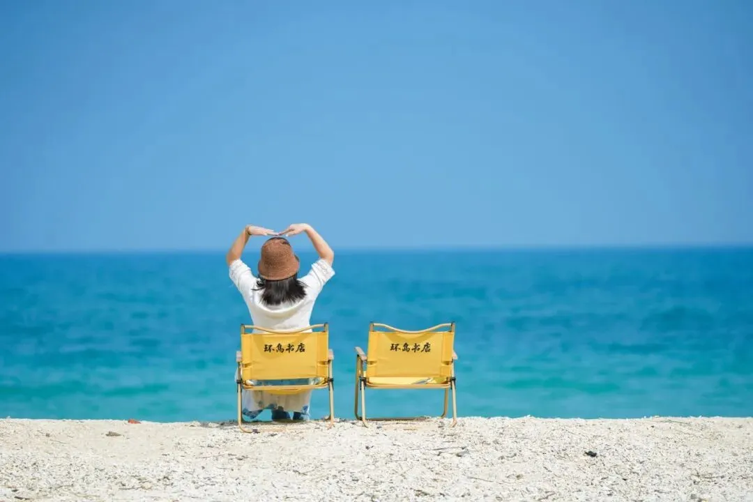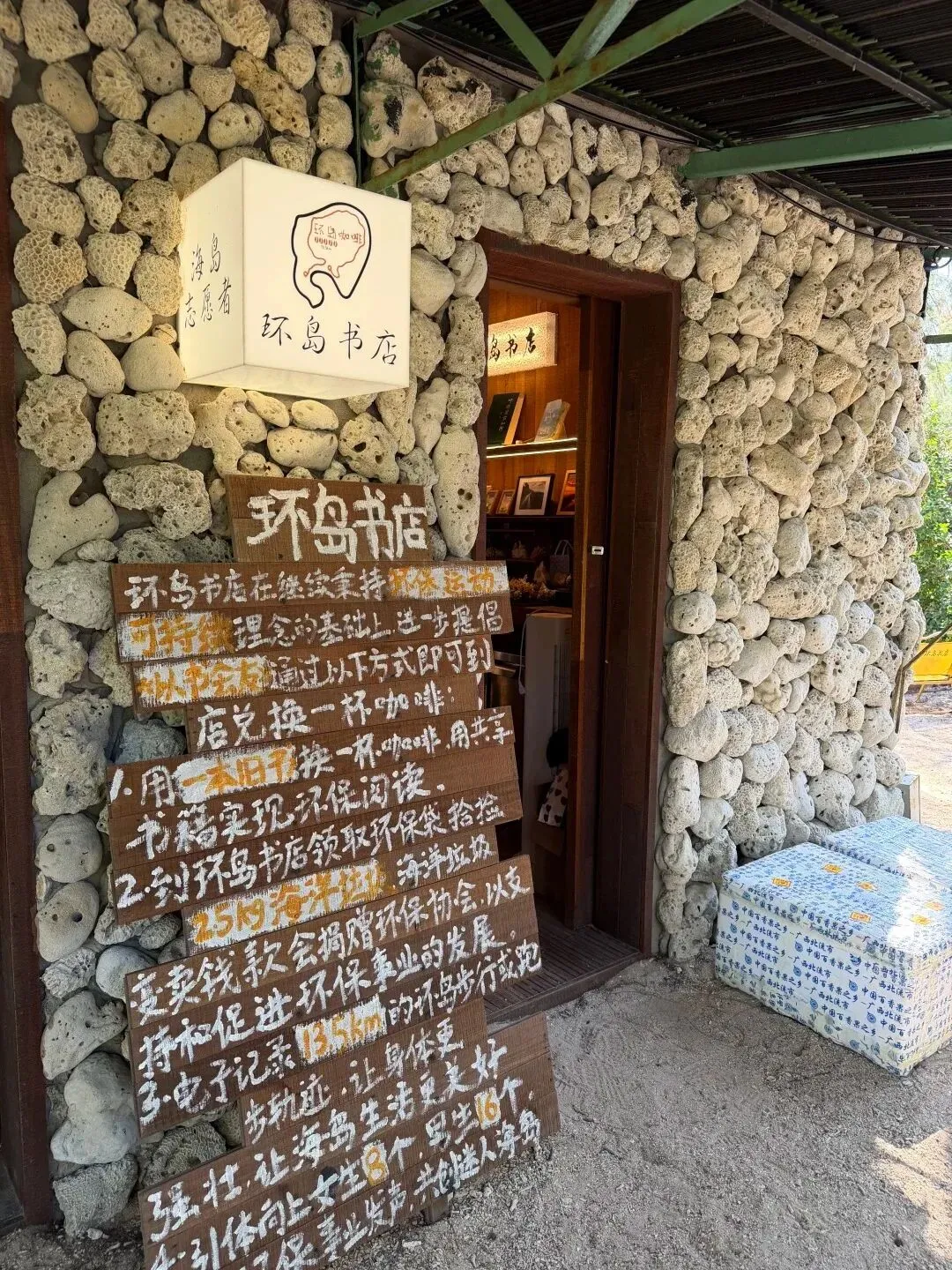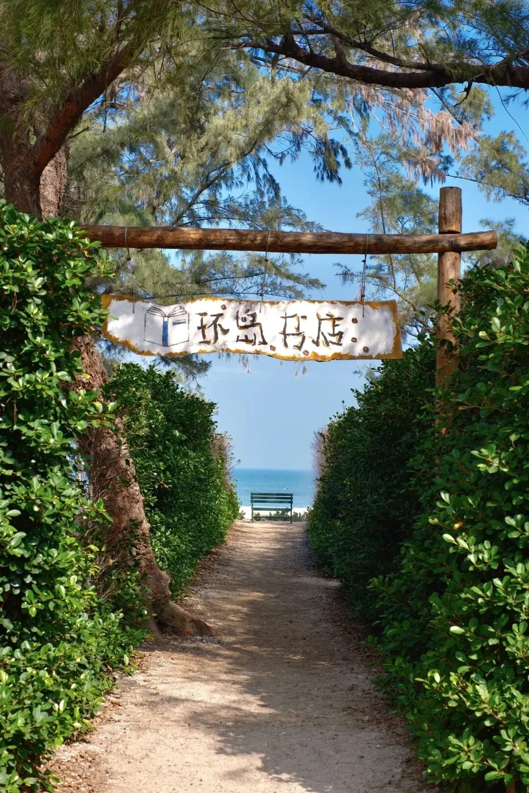 沿着贝壳沙滩骑行,拐进一条小径,就会发现这座藏在海边的文艺秘境。这家以环保为初心的书店,践行着“以书换书” 的理念,让游客的故事在岛上继续流转。