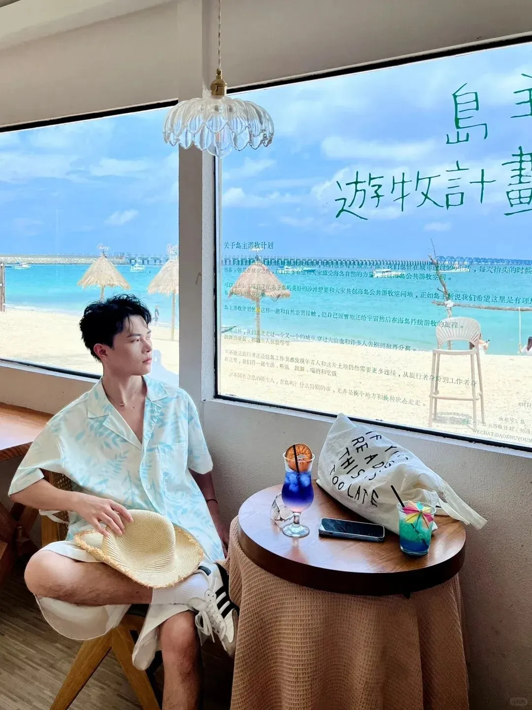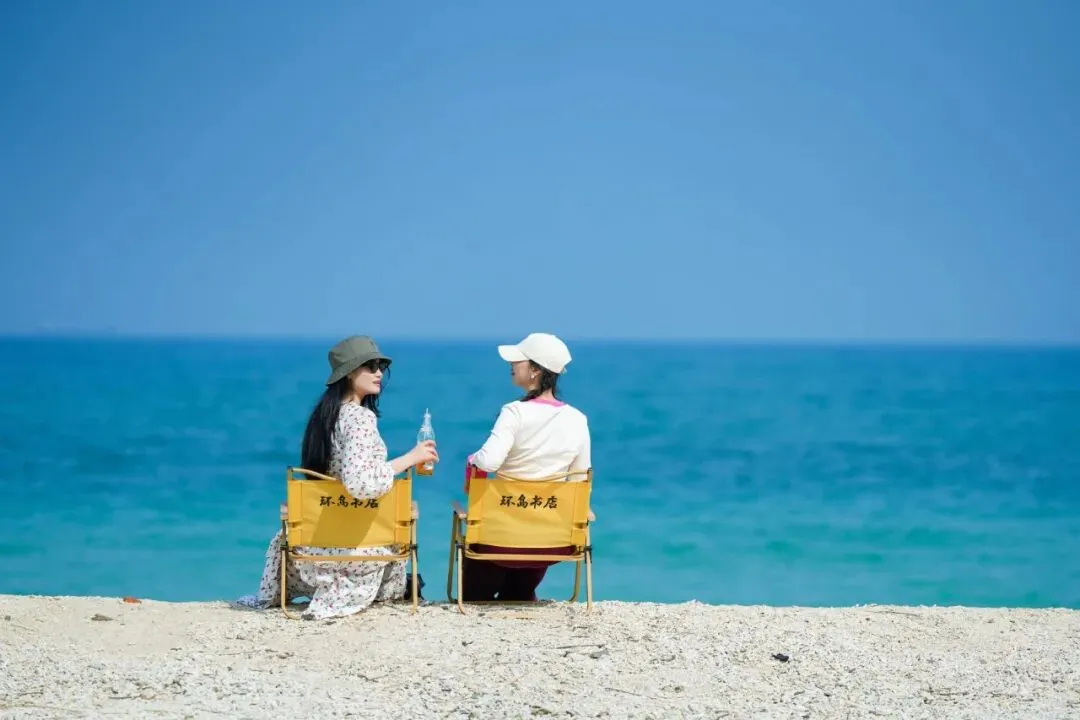 坐在书店前的海滩长椅上,面前是秋冬限定的果冻海,手里捧着一本陌生旅人留下的书,海风轻轻翻动书页,时光都变得温柔起来。
