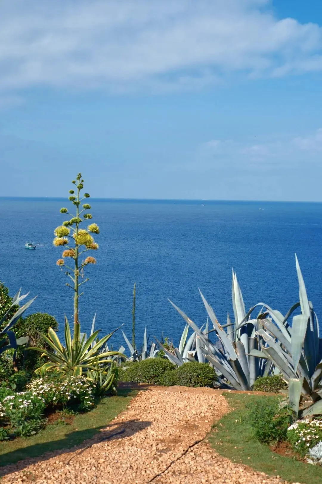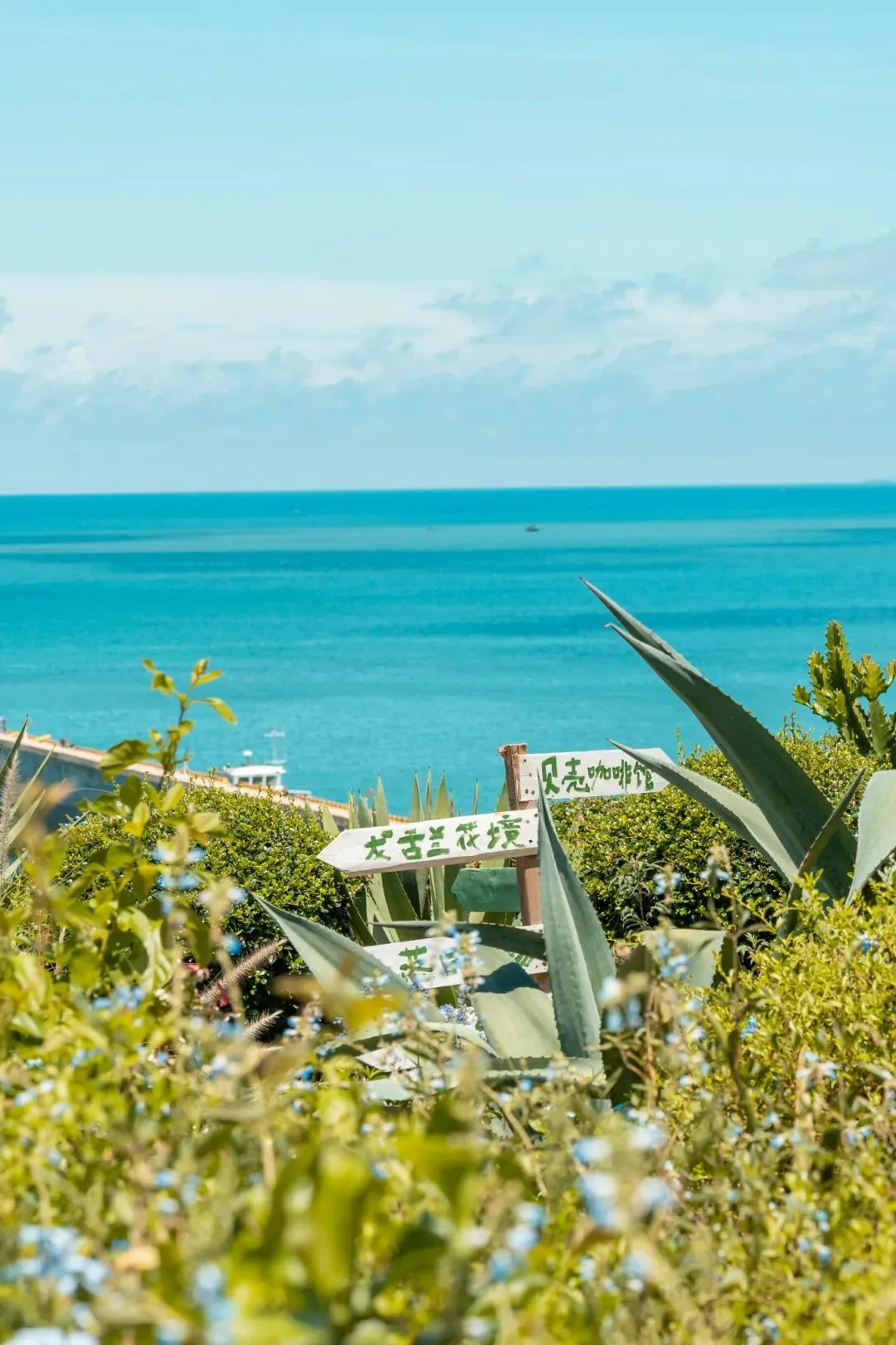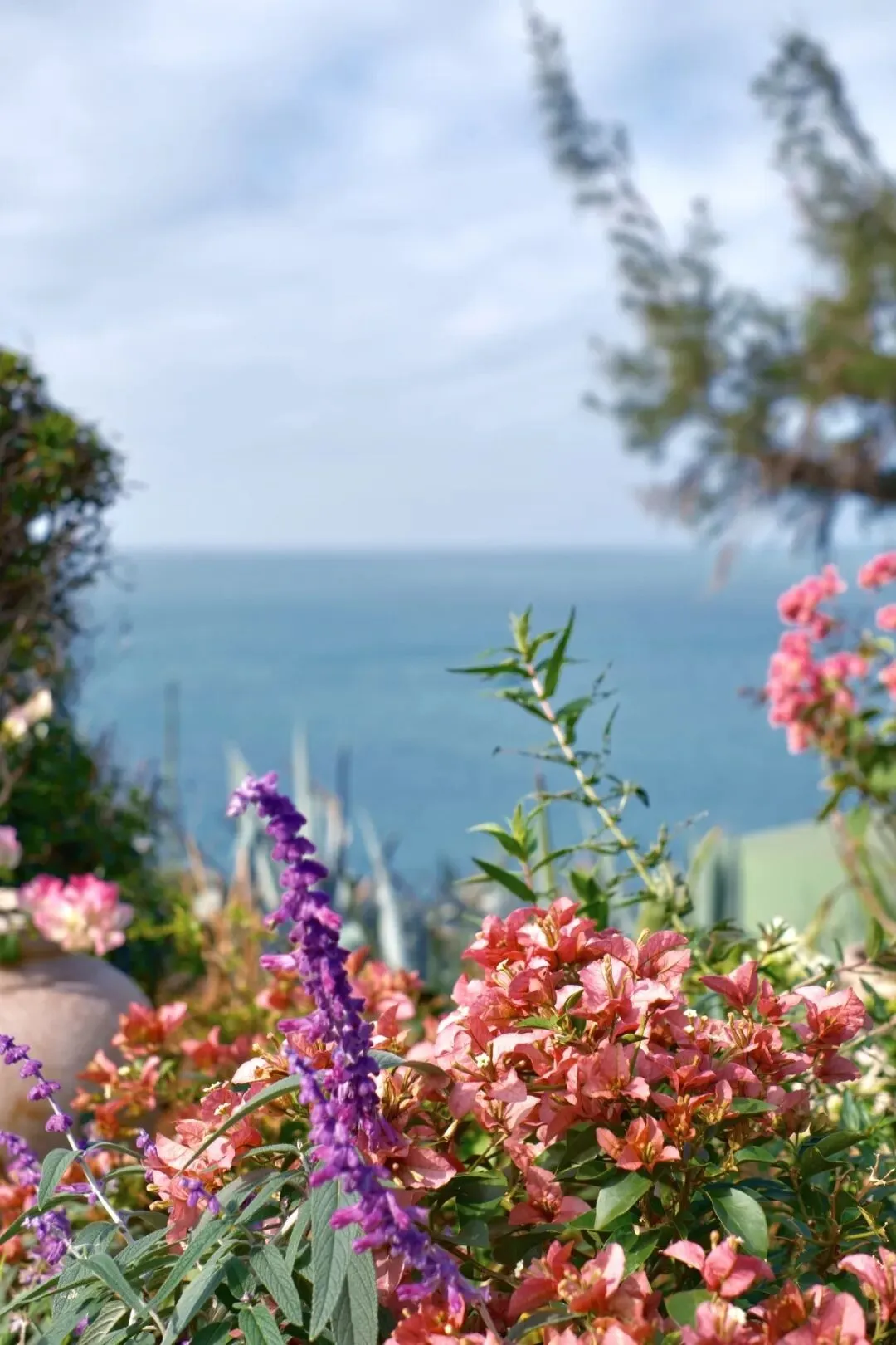 蜿蜒的小径穿梭在花海中,每一个转角都能邂逅惊喜,蔚蓝的大海与绚烂的花海相映成趣。
