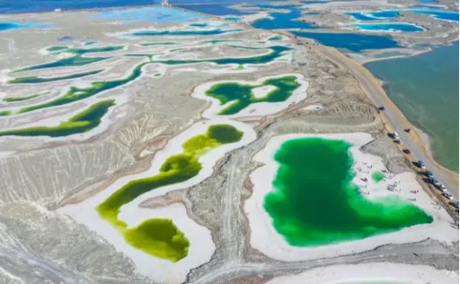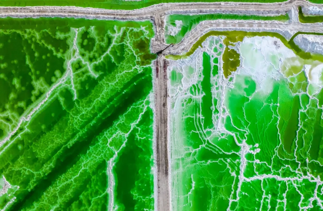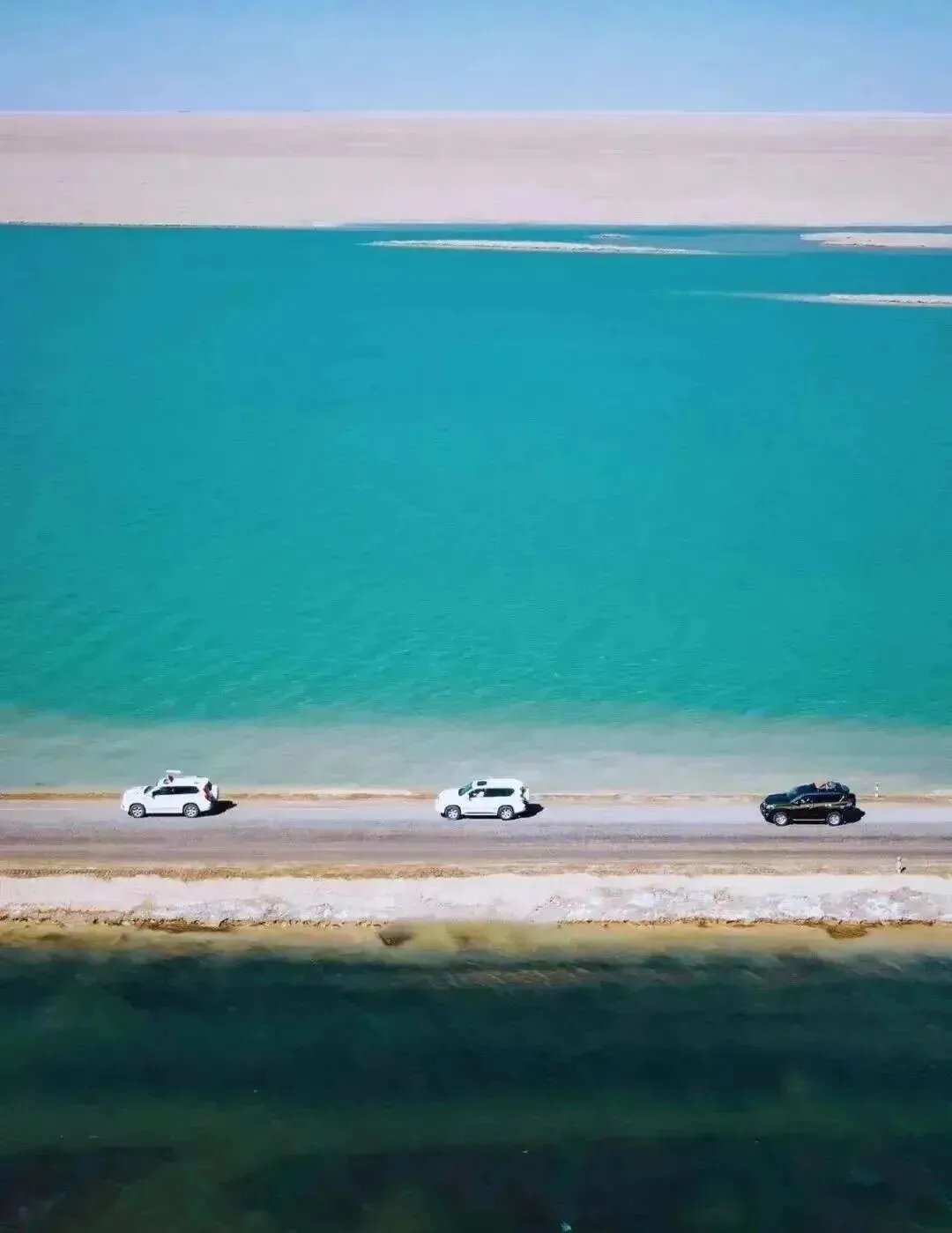【翡翠湖】电影《送你一朵小红花》取景地,形态迥异、深浅不一的盐池宛如一块块晶莹剔透的“翡翠”