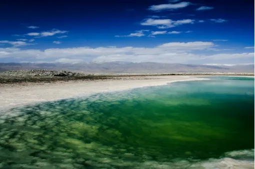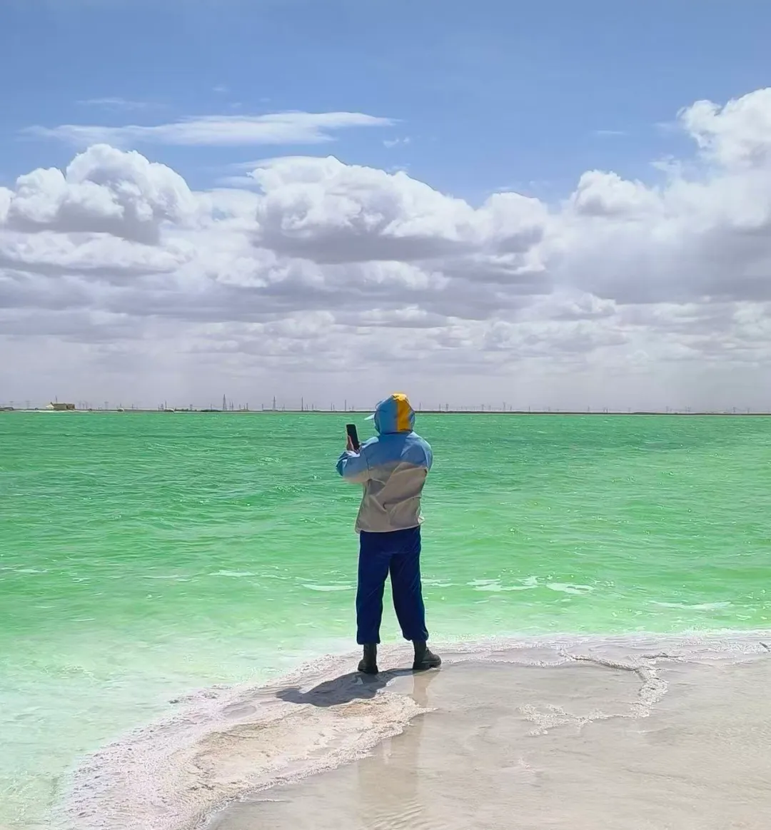 你可以沿着景区内的栈道漫步,近距离观赏盐湖的美景。湖水在不同的光线下会呈现出不同的色彩,有时是清澈的碧绿,有时是深邃的湛蓝,有时又泛着淡淡的青灰色,宛如一块巨大的调色板,将天空与湖面巧妙地融合在一起。湖中还生长着一种奇特的植物——盐藻,在特定的季节,它们会让湖水呈现出梦幻般的红色,为这片白色的世界增添一抹亮丽的色彩。
